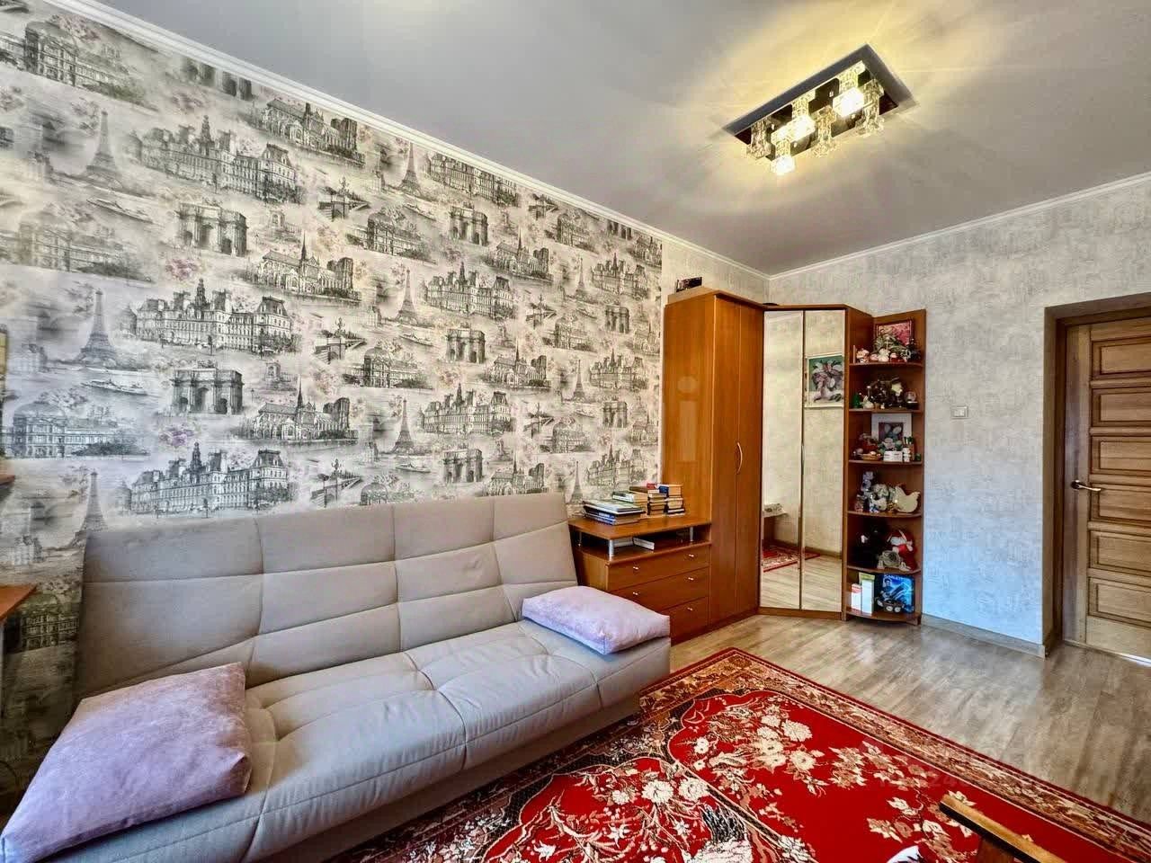 Трёхкомнатная квартира площадью 78 м² расположена в кирпичном доме 2003 года постройки, возведённом для персонала администрации, что обеспечило повышенное качество строительства и продуманные инженерные решения. Дом отличается высокой шумоизоляцией и долговечностью материалов. На этаже всего две квартиры, что гарантирует минимум соседей и максимум приватности. Высота потолков 2,9 м создаёт ощущение простора, а натуральные отделочные материалы — дубовый паркет, деревянные подоконники, гипсокартонные потолки и качественные обои — формируют тёплую и стильную атмосферу. Санузел оборудован итальянским санфаянсом, а кухня оснащена немецкой встроенной техникой Bosch, которая остаётся в квартире. Кухонный гарнитур из массива дерева дополнен пятиступенчатым фильтром для воды. Вся мебель — импортного производства, из натуральных материалов, передаётся новому владельцу, что позволяет заселиться сразу после покупки.