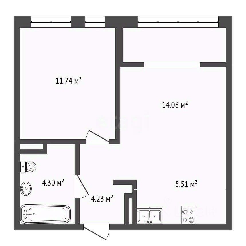 Квартира имеет отличную планировку с большой кухней-гостиной (площадь 20м2) и просторной спальней (площадью почти 12 метров) на комфортном 9 этаже.