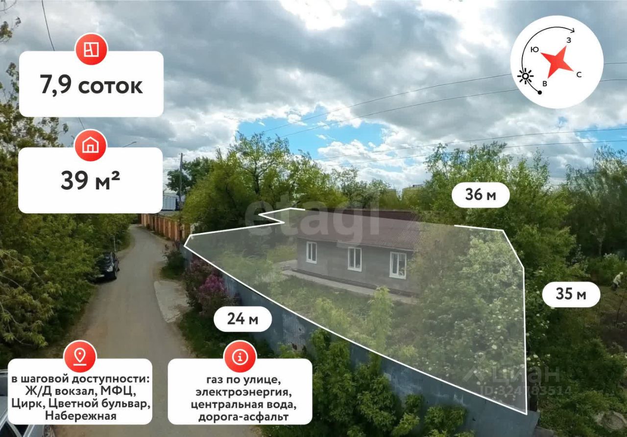 Продам дом в самом центре города! Дом 2015 года постройки, площадью 40 кв.м. на участке 8 соток. Технические характеристики : фундамент -сваи,стены-брус,кровля- ондулин, высота потолков 250 см. Коммуникации :водоснабжение-центральное, водоотведение-септик 7 куб.,отопление-электрическое + теплый пол, система вентиляции, имеется водонагреватель воды, капитальный погреб 2*3 м. Рядом с домом проведен газ- возможность подключения. В доме выполнен косметический ремонт. При продаже остается: кухонный гарнитур, электрическая плита, шкаф-купе. Участок огорожен профнастилом, имеются насаждения. Рядом с домом имеется бетонированная площадка. Инфраструктура: в шаговой доступности Цветной бульвар,театр,набережная,цирк,Горсад, ЖД вокзал. Транспортная развязка хорошая, в любую сторону города выезд. Рядом находится гаражный кооператив, сама улица спокойная без активного транспортного потока, благодаря чему тихо. Участок без дополнительных построек, что позволяет вам реализовать свои замыслы в полном объеме. МЫ ГАРАНТИРУЕМ ФИНАНСОВУЮ БЕЗОПАСНОСТЬ ДЛЯ НАШИХ КЛИЕНТОВ. Код пользователя: 60608 Номер в базе: 1226439