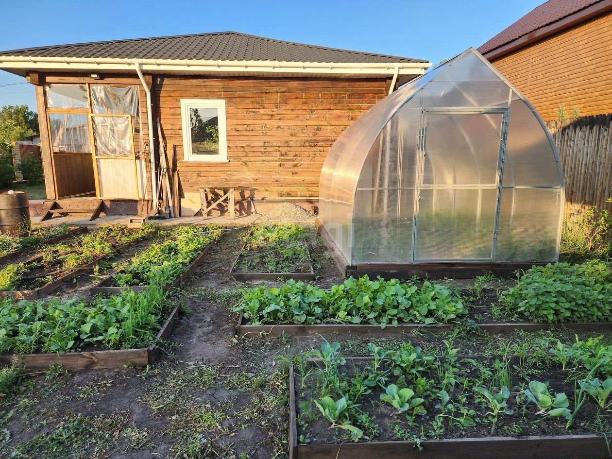 Дом в тупиковой улице, где всего несколько домов и нет сквозного проезда. На участке есть новая баня, готовая к использованию, есть хозпомещение, где можно хранить инструменты, много плодовых деревьев и цветов, две теплицы. Забор из полукруглого деревянного штакетника выглядит очень оригинально.
