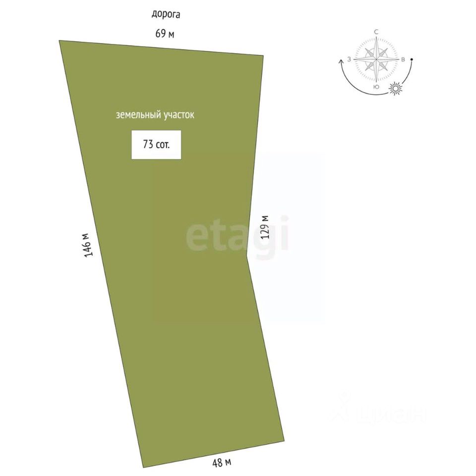Площадь участка73 сотки
