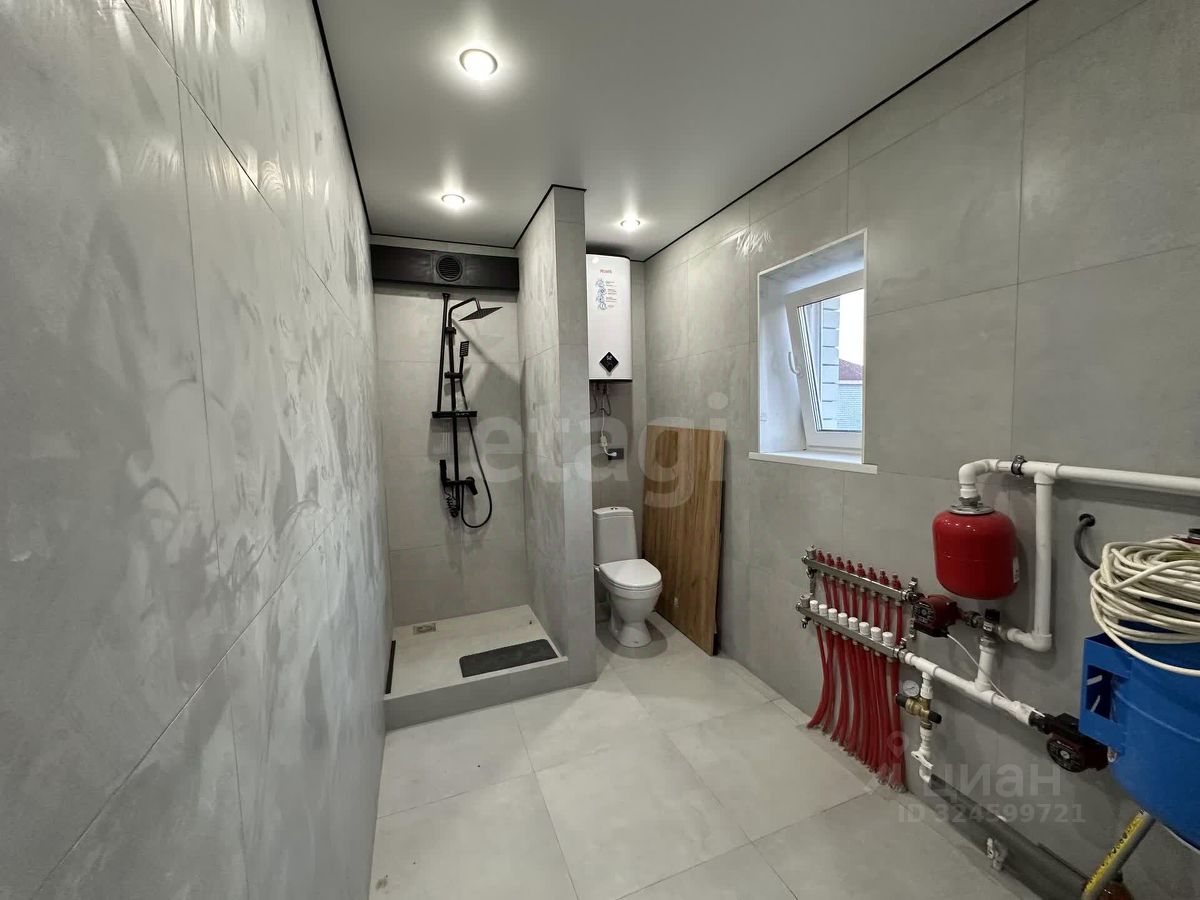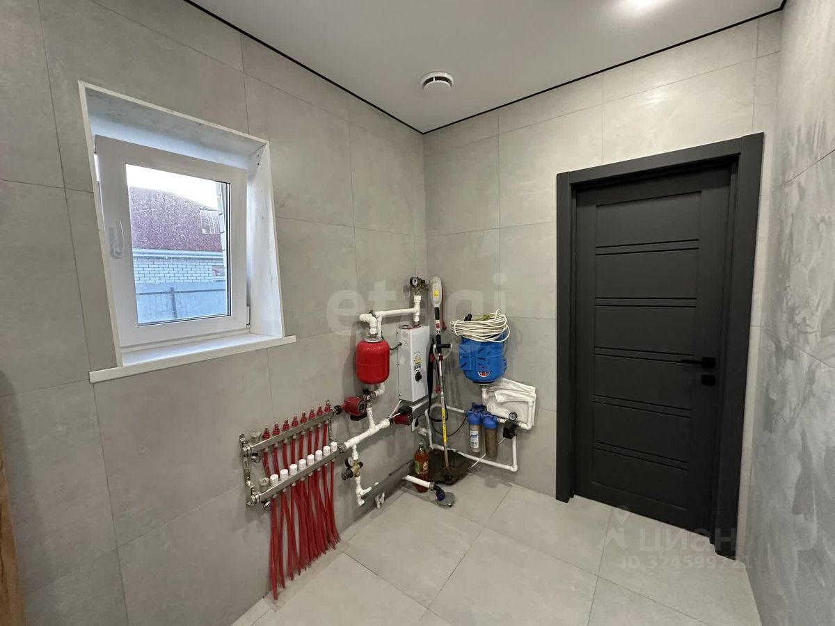Фундамент: ленточный с залитой монолитной плитой. Наружные стены: блок поревит, обложенный полуторным белым силикатным кирпичом. Крыша: четырехскатная, утепленная, перекрытия деревянные, покрытая ондулином. Внутренняя отделка: современный ремонт с мебелью и техникой. Водоснабжение: автономное, своя скважина, установлен насос, фильтры, расширительный мембранный бачок, манометр, реле давления. Водоотведение: автономное, индивидуальный септик из бетонных колец в количестве 3 штук. Отопление: индивидуальный электрокотел, теплый водяной пол, расширительный бачок, коллектор для теплого пола, установлены 2 циркуляционных насоса. Электричество: электропроводка по всему дому. Планировка: кухня-гостиная 22,1 кв.м., три изолированные комнаты 12,2, 14,1 и 15,8 кв.м., санузел 5,8 кв.м. и котельная 6,3 кв.м.