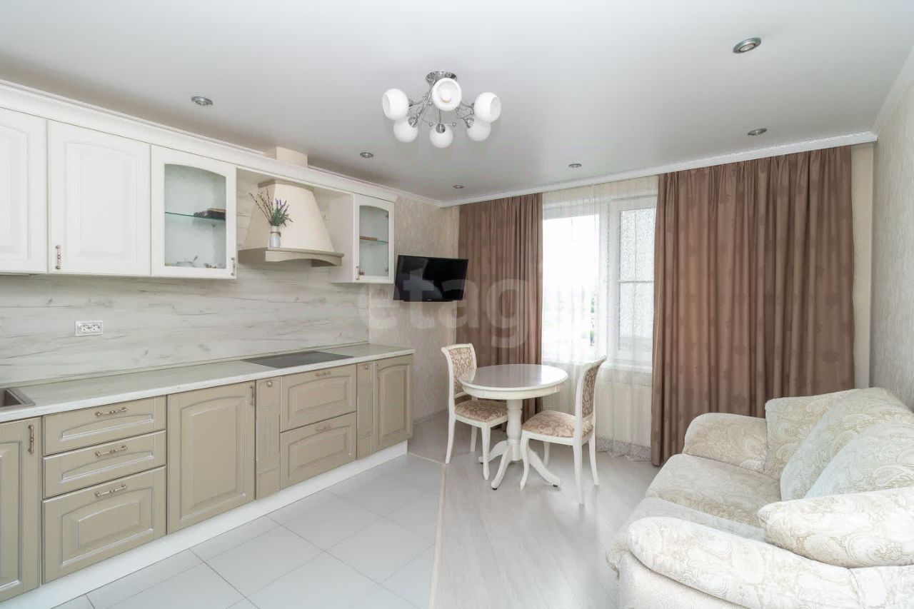 Свежий ремонт в нежных и теплых тонах с использованием качественным материалов. В зоне готовки и прихожей на полу керамогранит, что обеспечит надежность и комфорт. В зоне отдыха и спальни на полу ламинат. Стены в качественных красивых обоях. Стильная и качественная мебель. Вся мебель и техника ,которую вы видите на фото (кроме СВЧ и холодильника) остается новым владельцам. Оптимальная планировка с кухней-гостиной. Просторный и вместительный шкаф в прихожей. Окна выходят на закат, что исключает перегрев в летний период и правильно распределяет энергию жилого помещения.
