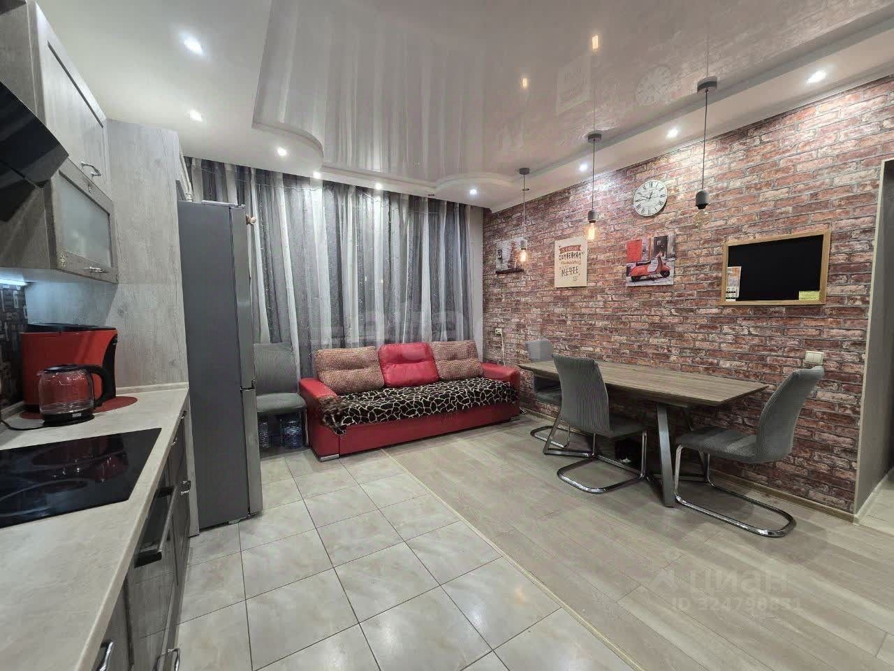 Квартира площадью 107 кв. м расположена на 6 этаже кирпичного дома, что обеспечивает оптимальный баланс между высотой и удобством. Планировка включает просторную кухню-гостиную (24 кв. м), спальню (19 кв. м), зал (28 кв. м), детскую (27 кв. м) и лоджию (9 кв. м). Санузел раздельный. Вся встроенная мебель остается: кухонный гарнитур с техникой Bosch (плита, духовой шкаф, полупрофессиональная вытяжка), двухстворчатый холодильник, стиральная и посудомоечная машины. В спальне оборудована гардеробная, в прихожей — кладовка. Детская с современной отделкой подойдет как для маленького ребенка, так и для подростка.