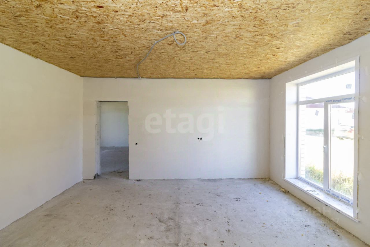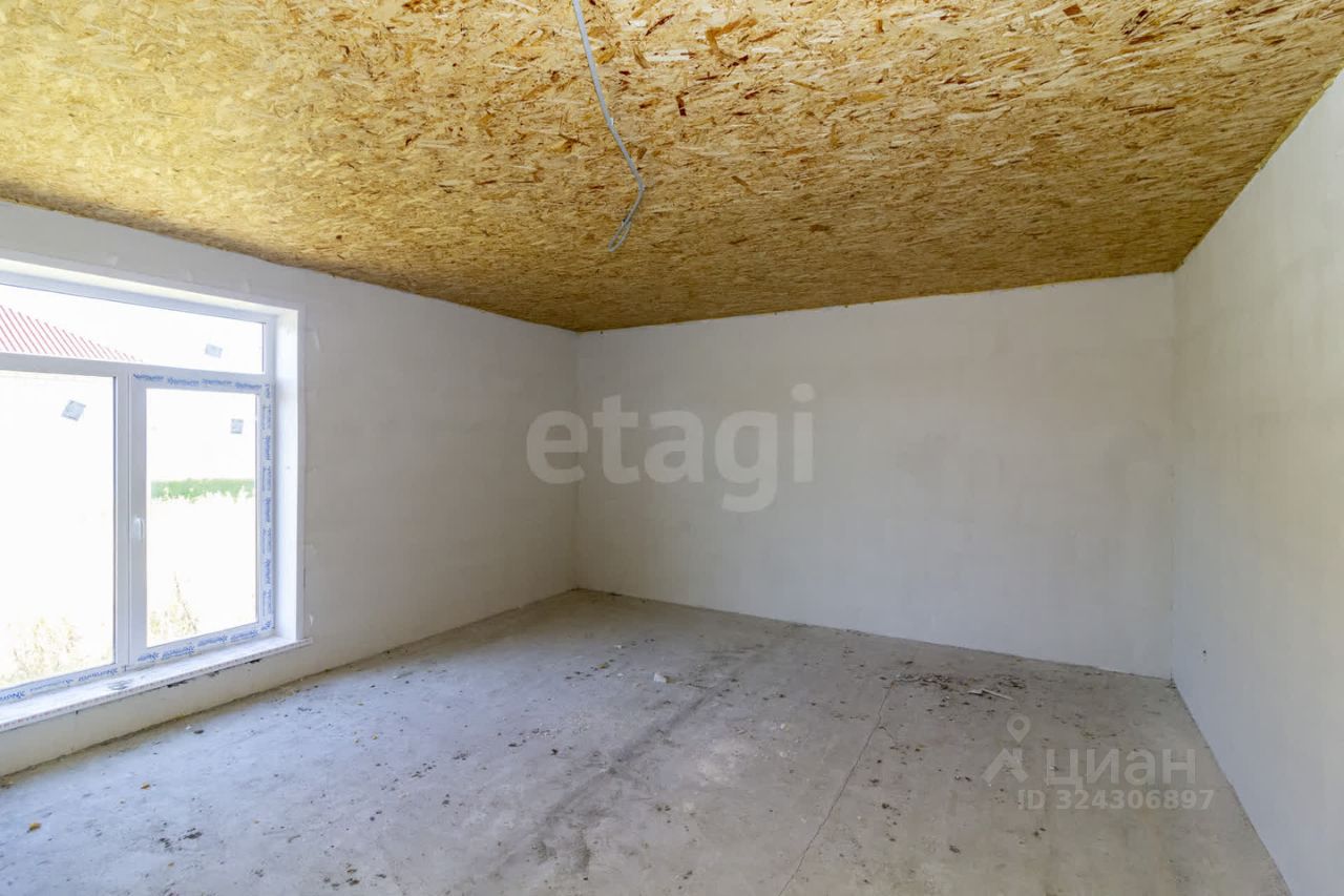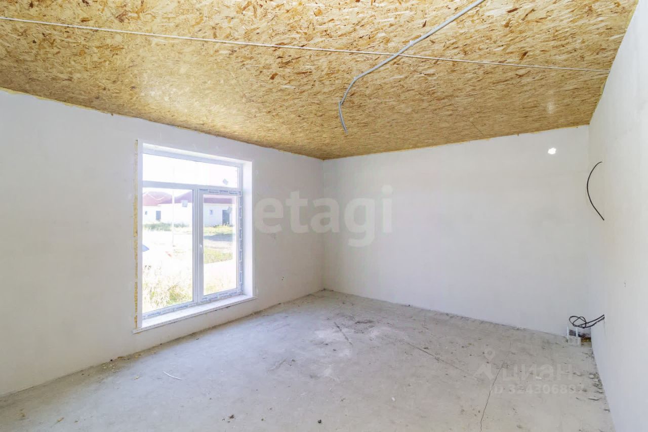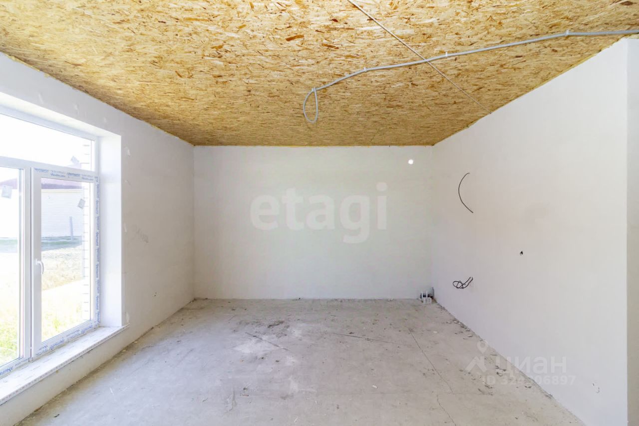 Фундамент: ленточный с залитой монолитной плитой. Наружные стены: блок поревит, обложенный полуторным белым силикатным кирпичом. Крыша: четырехскатная, утепленная, перекрытия деревянные, покрытая ондулином. Внутренняя отделка: предчистовая - на полу стяжка по маякам, стены воровнены, окна с тройным стеклопакетом, железная входная дверь. Водоснабжение: автономное, своя скважина, установлен насос, фильтры, расширительный мембранный бачок, манометр, реле давления. Водоотведение: автономное, индивидуальный септик из бетонных колец в количестве 3 штук. Отопление: индивидуальный электрокотел, теплый водяной пол, расширительный бачок, коллектор для теплого пола, установлены 2 циркуляционных насоса. Электричество: электропроводка по всему дому. Планировка: кухня-гостиная 22,1 кв.м., две изолированные комнаты 15,8 и 26,3 кв.м., котельная с санузлом площадью 12,1 кв.м.