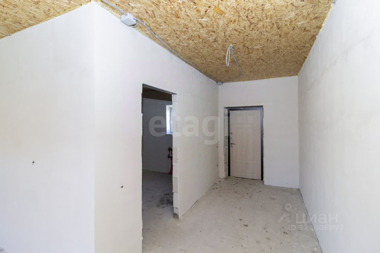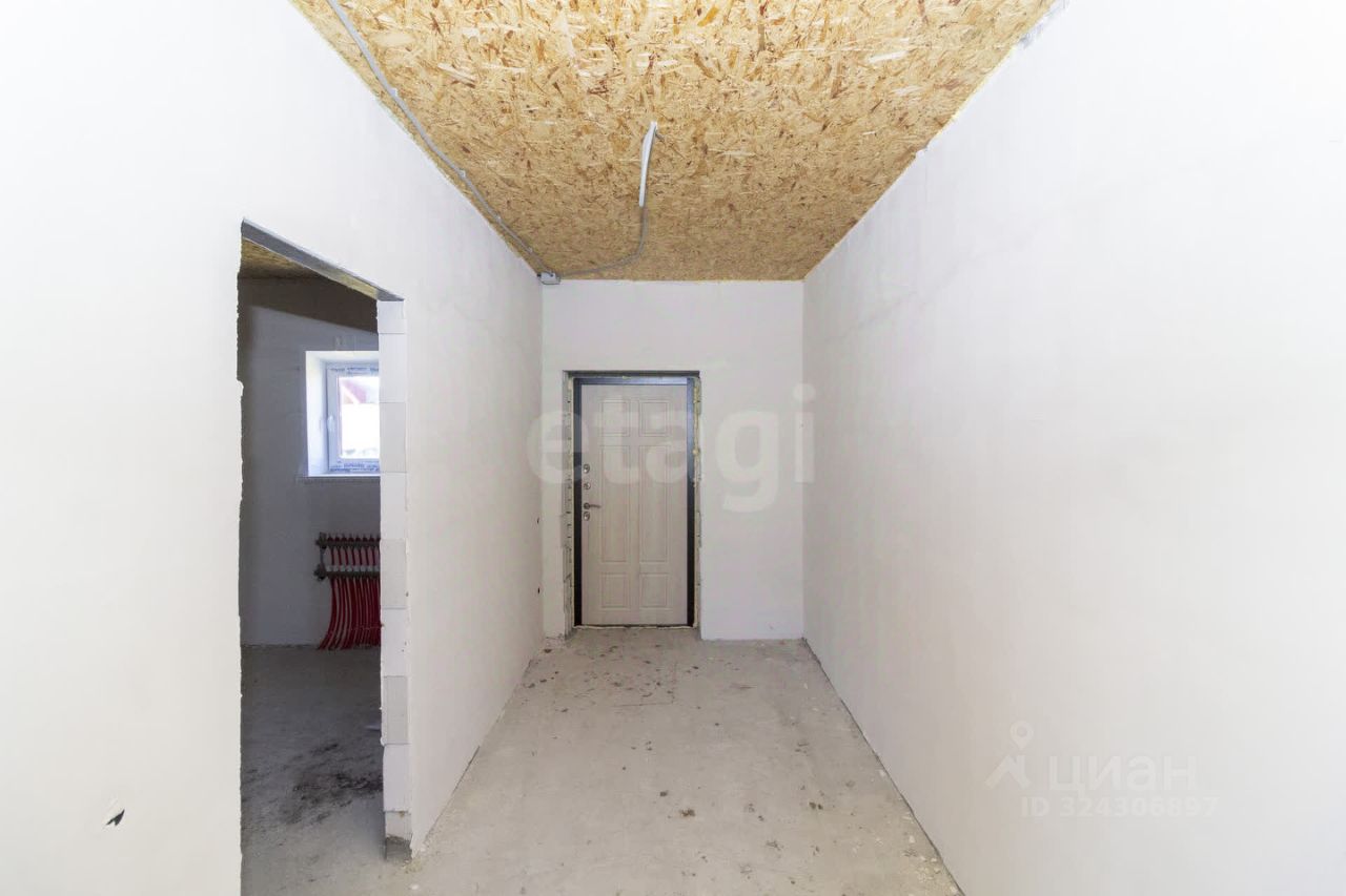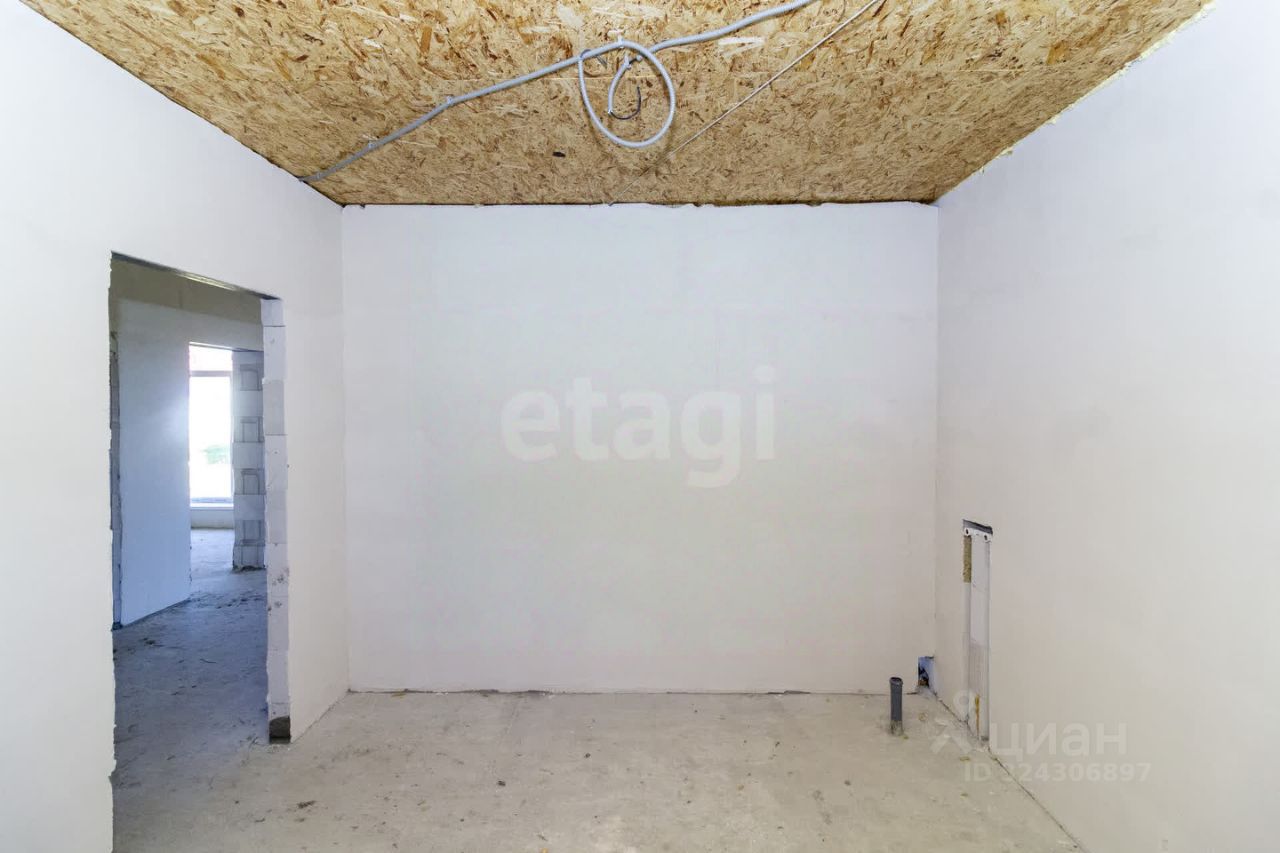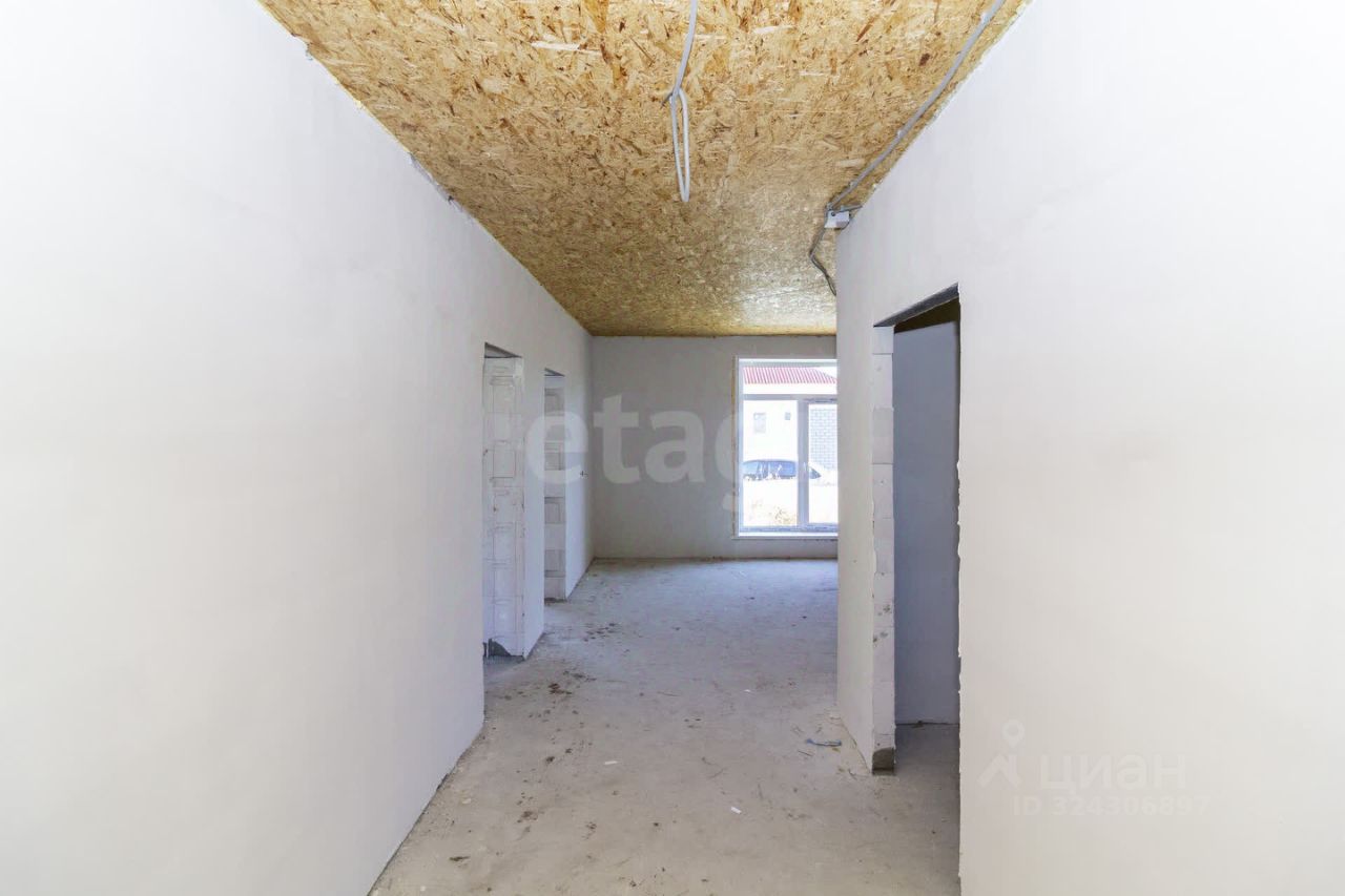 Фундамент: ленточный с залитой монолитной плитой. Наружные стены: блок поревит, обложенный полуторным белым силикатным кирпичом. Крыша: четырехскатная, утепленная, перекрытия деревянные, покрытая ондулином. Внутренняя отделка: предчистовая - на полу стяжка по маякам, стены воровнены, окна с тройным стеклопакетом, железная входная дверь. Водоснабжение: автономное, своя скважина, установлен насос, фильтры, расширительный мембранный бачок, манометр, реле давления. Водоотведение: автономное, индивидуальный септик из бетонных колец в количестве 3 штук. Отопление: индивидуальный электрокотел, теплый водяной пол, расширительный бачок, коллектор для теплого пола, установлены 2 циркуляционных насоса. Электричество: электропроводка по всему дому. Планировка: кухня-гостиная 22,1 кв.м., две изолированные комнаты 15,8 и 26,3 кв.м., котельная с санузлом площадью 12,1 кв.м.