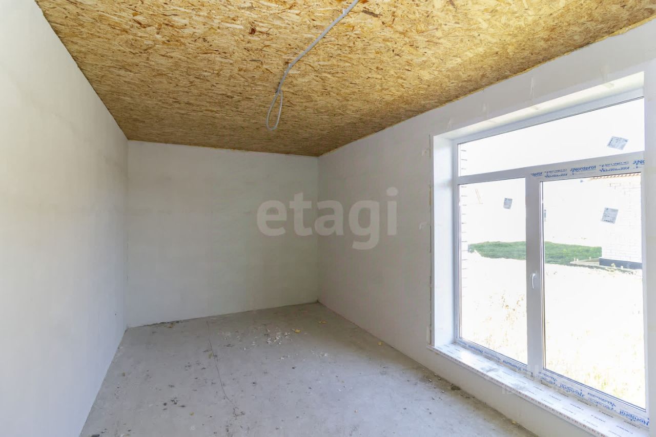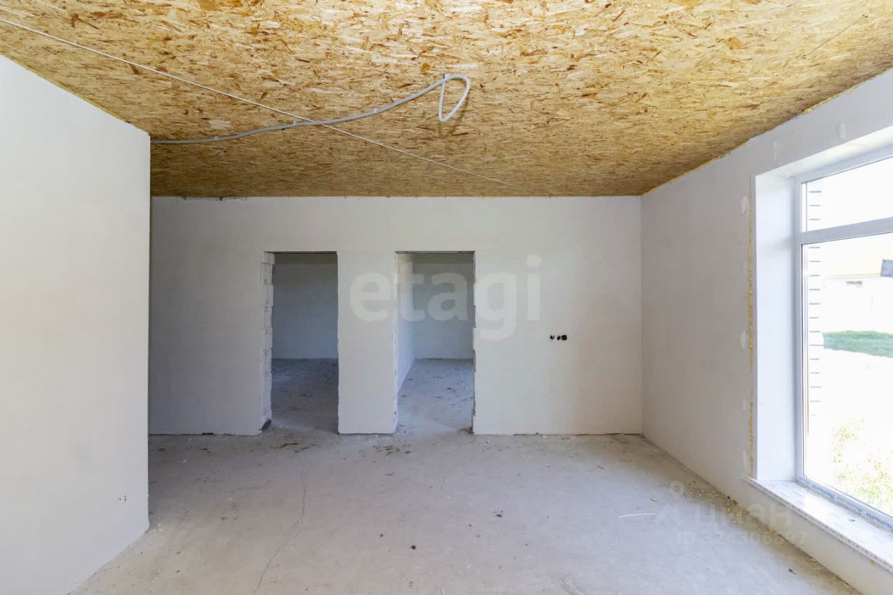 Фундамент: ленточный с залитой монолитной плитой. Наружные стены: блок поревит, обложенный полуторным белым силикатным кирпичом. Крыша: четырехскатная, утепленная, перекрытия деревянные, покрытая ондулином. Внутренняя отделка: предчистовая - на полу стяжка по маякам, стены воровнены, окна с тройным стеклопакетом, железная входная дверь.