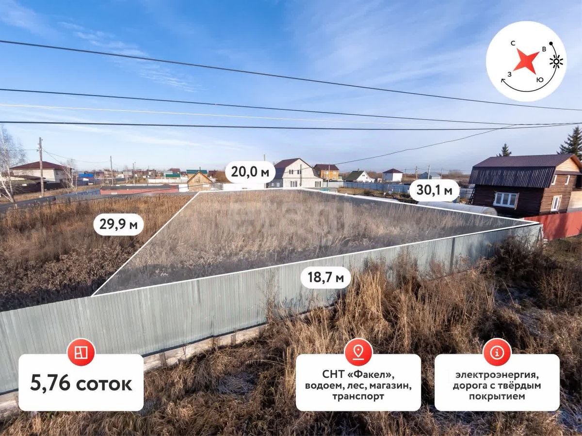 Описание участка: Продается отличный участок правильной формы площадью 5,76 сотки в СНТ ''Факел''. Участок ровный, прямоугольной формы, соседи — со всех сторон. Участок огорожен забором с 3-х сторон, что сэкономит ваши деньги. Также уже подключено электричество (экономия около 50 000р) Расположение: Участок в садовом обществе расположен по Велижанскому тракту, с поворотом в 2 км от объездной дороги, недалеко от озера Липовое. Находится в черте города Тюмени, в перспективе в обществе будет газ и центральный водопровод. Инфраструктура и особенности: Развитое СНТ: построено уже достаточно много жилых домов.Охрана: круглосуточная, въезд через шлагбаум.Удобный подъезд к участку. Близлежащие объекты: В шаговой доступности автобусная остановка.В 10 минутах — магазин ''Магнит''.В 15 минутах — школа 45 и детский сад 121. Разрешенное использование: Ведение садоводства — подходит для строительства по государственным программам (семейная ипотека). Категория земель - ''Земли населенных пунктов'' Имеется также соседний участок аналогично площади. Можно приобрести два участка!
