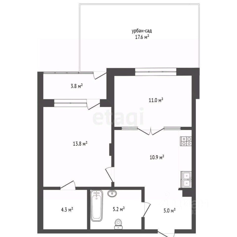 Квартира 1+ с ПРИВАТНЫМ САДОМ 17 м² в ЖК ''Эклипт'' | Кухня-гостиная, гардеробная Уникальное предложение! Продается современная квартира формата ''1+'' площадью 52 кв.м. с эксклюзивным приватным урбан-садом (17 кв.м.). Объект сдан, ключи на руках — можно сразу приступать к ремонту. О квартире : Формат: 1+ (изолированная спальня + просторная кухня-гостиная) Площадь: 51.99 кв.м. + урбан-сад 17 кв.м. Особенности планировки: спальня с гардеробной, лоджия с прямым выходом в сад Отделка: улучшенная черновая (ровные стены, стяжка, разведенные коммуникации) — идеальная база для вашего дизайна Состояние: Дом сдан, ключи выданы Урбан-сад — ваша личная территория: Эксклюзивное преимущество! Приватная зеленая зона, доступная прямо с лоджии. Здесь можно разбить сад, поставить шезлонги или организовать летнюю столовую. Это дополнительная жилая площадь и оазис для отдыха в черте города. О комплексе ''Эклипт'': Инфраструктура: На территории — зоны отдыха, детские площадки, магазины, аптеки. Запланированы школа и детский сад. Парк: Рядом большой парк с велодорожками. Транспорт: До центра — 15 минут на авто. Остановка общественного транспорта в 300 метрах. Безопасность и сервис: видеонаблюдение, круглосуточная служба контроля УК, большие кладовые. Условия и сервис: Для вас: Полное юридическое сопровождение, ипотечный сервис, помощь в организации ремонта. Гарантия безопасной сделки Показ: В удобное для вас время Идеально для: ценителей современного формата жилья, тех, кто мечтает о приватном зеленом уголке в городе, для молодых пар и инвесторов. Это не просто квартира — это новый уровень комфортной городской жизни с частичкой природы. Звоните, чтобы лично оценить этот уникальный объект!