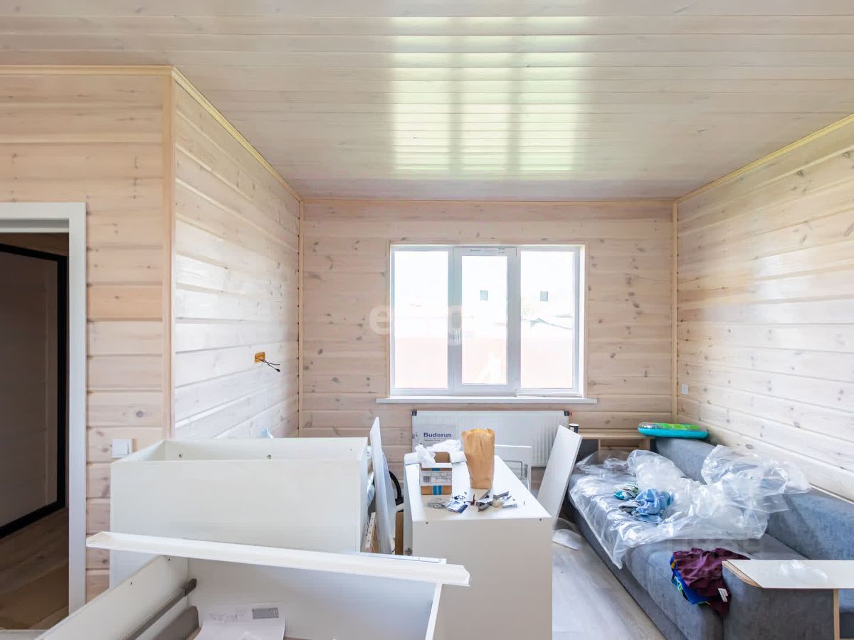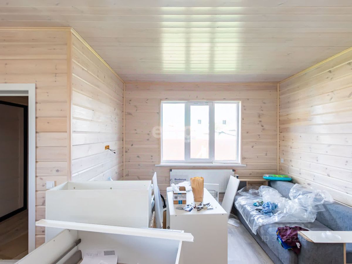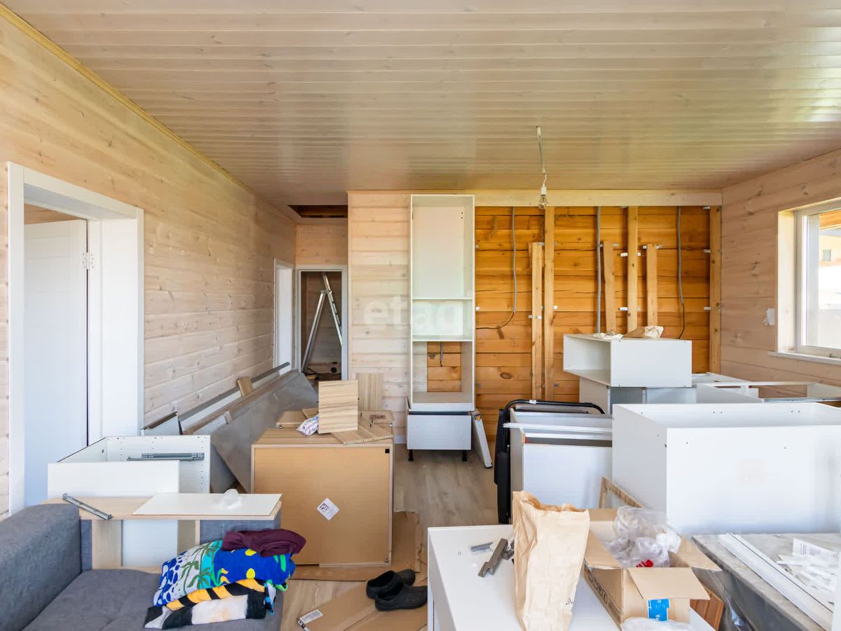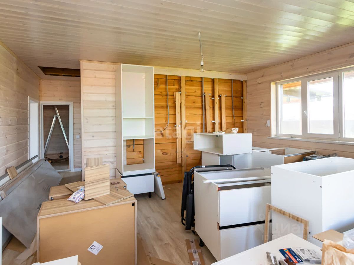 В доме выполнен свежий современный ремонт, на полу ламинат высокого класса , стены обшиты деревом (покрашены), установлены двери. Привезен кухонный гарнитур (остается при продаже)