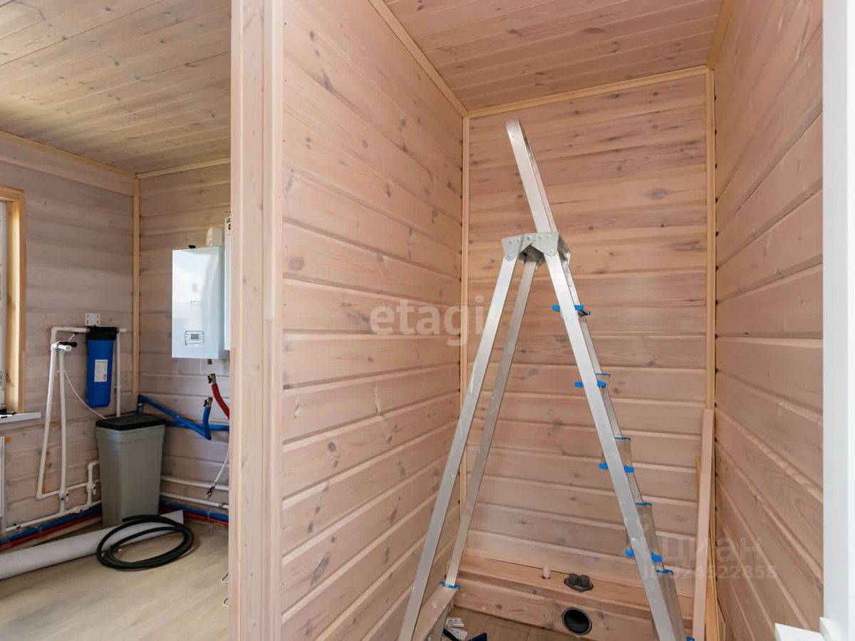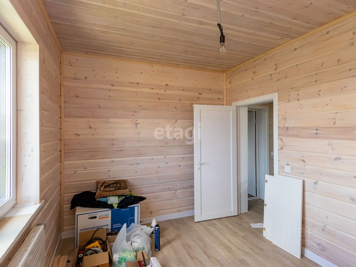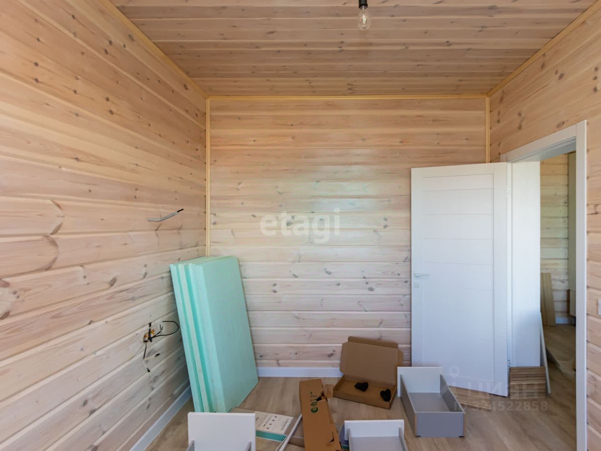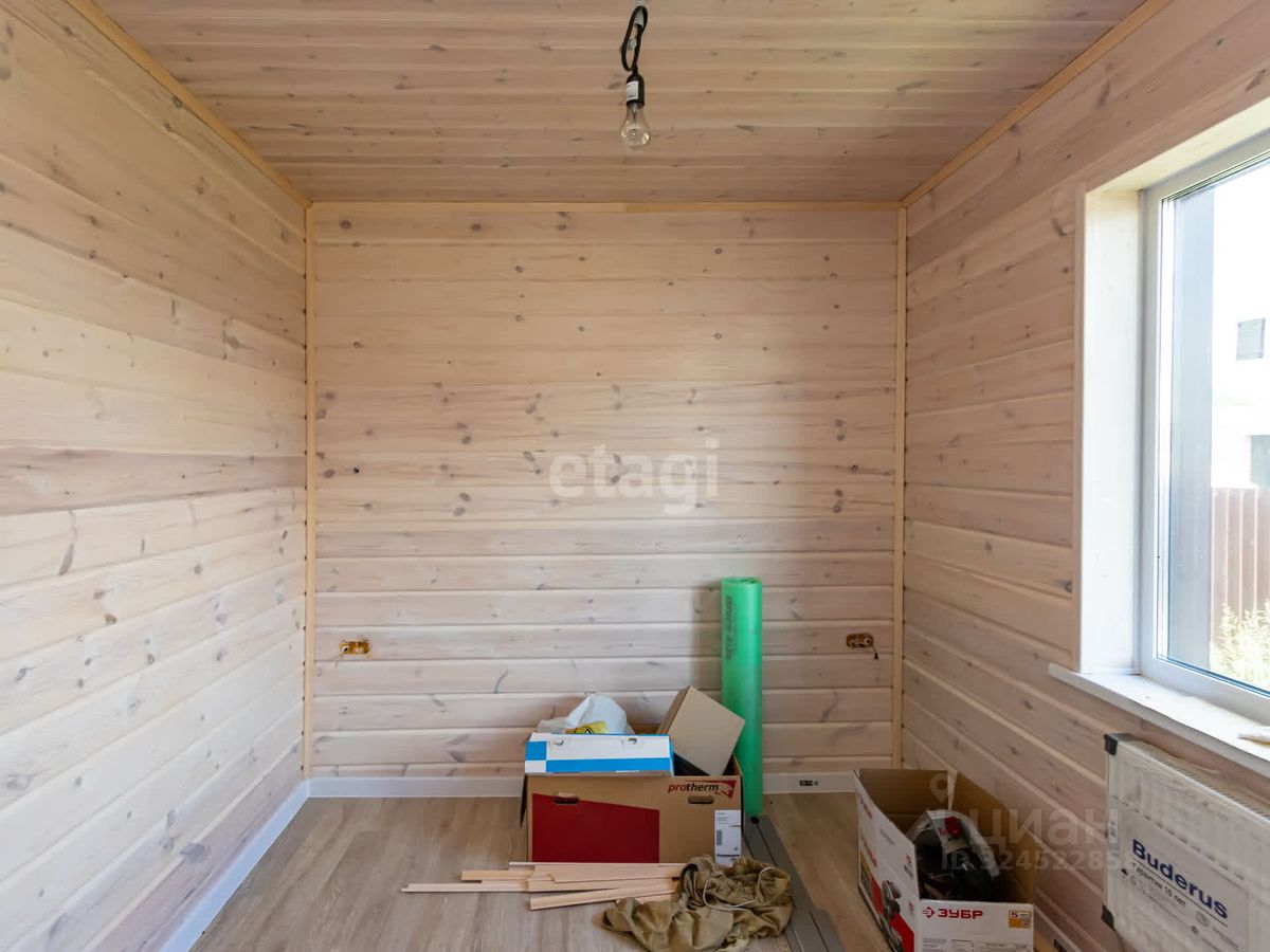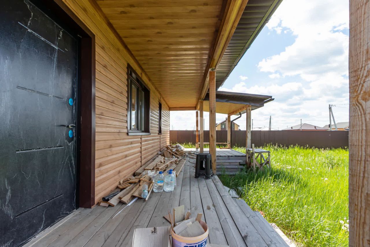 В доме выполнен свежий современный ремонт, на полу ламинат высокого класса , стены обшиты деревом (покрашены), установлены двери. Привезен кухонный гарнитур (остается при продаже)