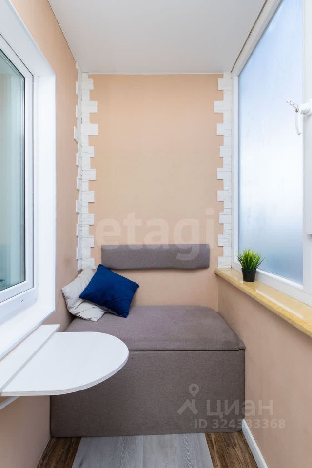 Санузел отделан кафелем, а на потолке установлен подвесной потолок, что добавляет современности. Балкон — это ваше личное пространство для отдыха: здесь обои, кирпичный декор, натяжной потолок, точечное освещение и теплый пол, где можно разместить диванчик и столик для утреннего кофе. Второй балкон оформлен ковролином и также имеет натяжной потолок с точечным освещением.