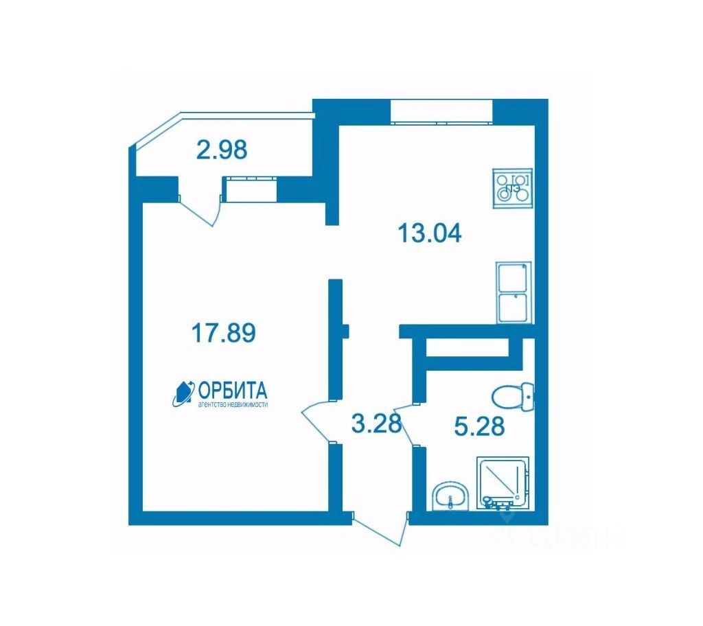 Общая площадь: 39,4 кв. м.