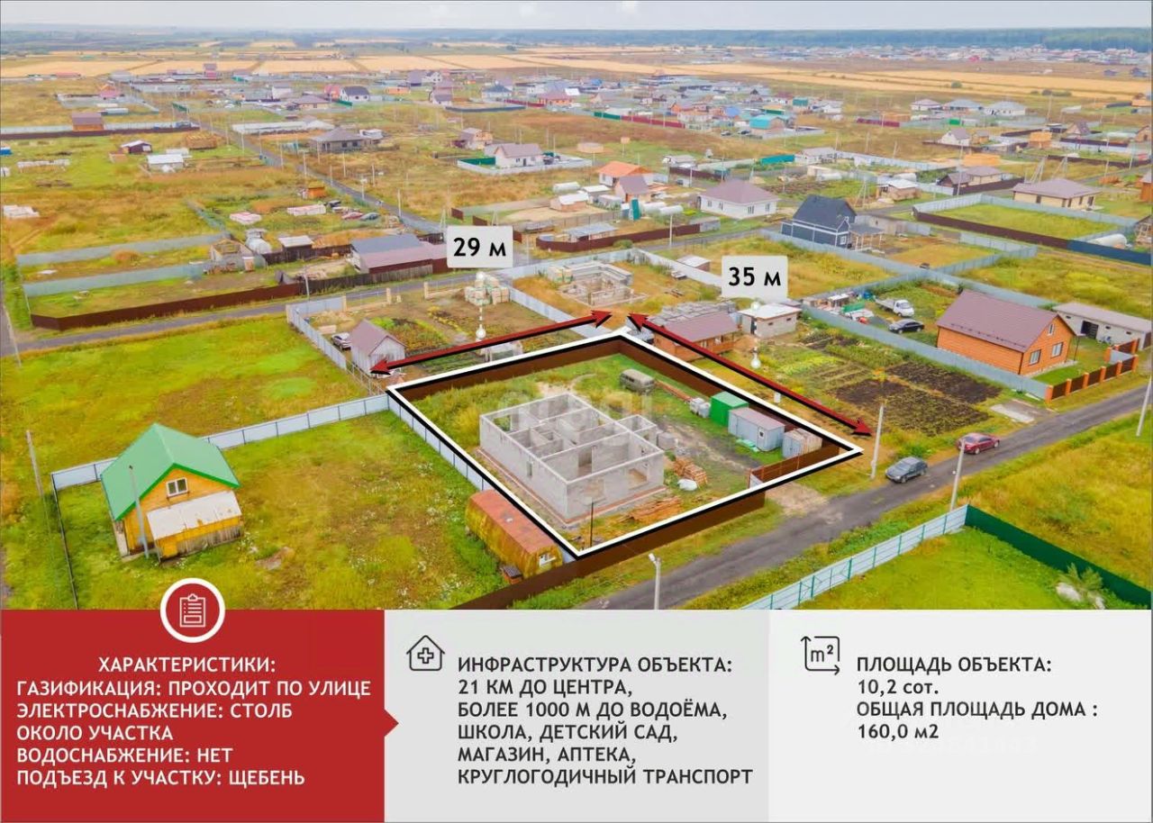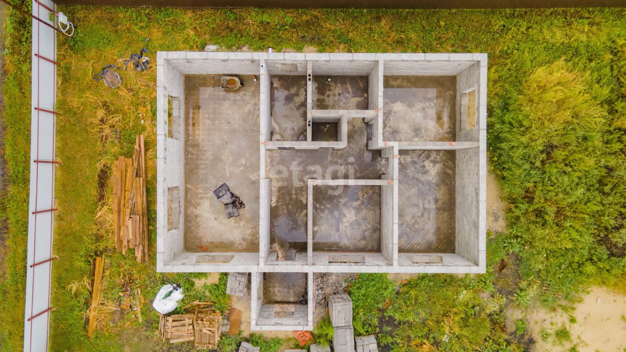 - Недостроенный добротный дом площадью 140 м² - Надежный фундамент: монолитная железобетонная плита марки бетона M300, армированная диаметром 12 мм - Подготовка фундамента включала тщательную подготовку котлован глубиной 1 м, песчаную подушку и использование щебня, пролив воды перед бетонированием - Возможность завершить строительство под собственные нужды - Удобства и коммуникации готовы: электричество подведено, газ доступен центрально - Проект предусматривает качественный дом из надежных материалов (стеновые блоки из керамзита) - Отличный земельный участок правильной формы, выровненный, окружённый качественным огражден
