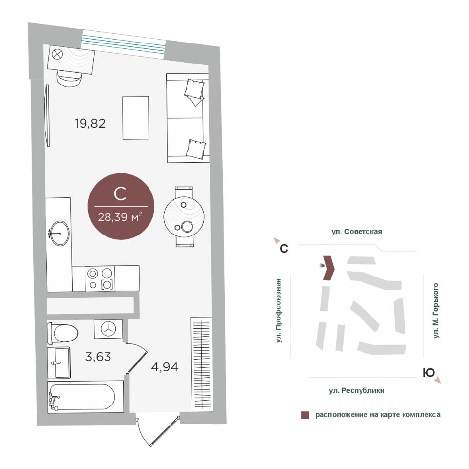 Общая площадь28,39 м2
