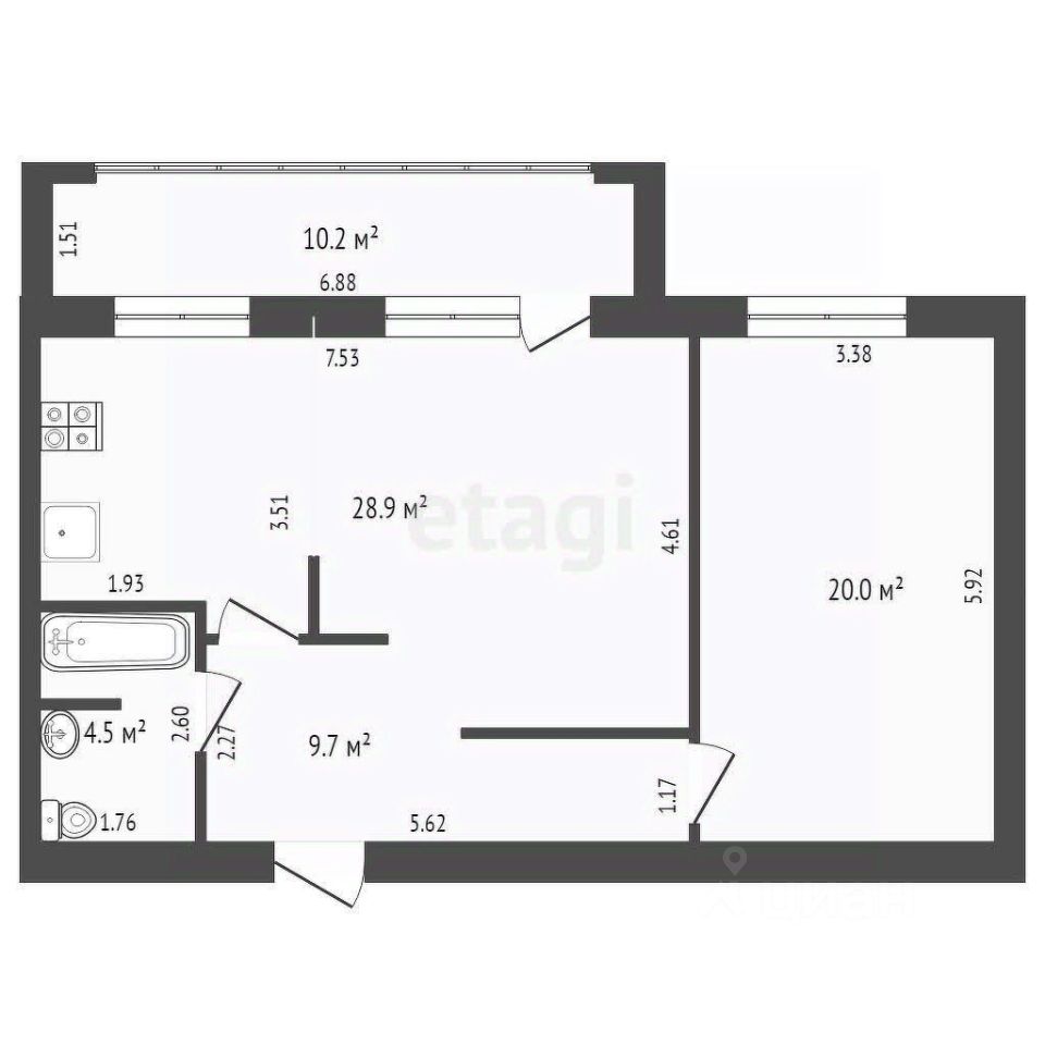 Подается светлая квартира формата 1+ на 8 этаже 63,1 кв.м. в жилом комплексе Дружба. Просторная комната 20 кв.м., кухна-гостинная 28,9 кв.м., лоджия 10,2 кв.м. (не учтен в общей площади), выхoд с кухни. Планировка позваляет сделать полноценную 2-х комнатную квартиру. При продаже остается кухонный гарнитур, плита, стол, кровать, шкаф, шкаф-купе.