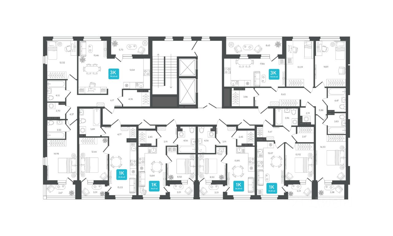 2-уровневые квартиры Просторная гостиная и кухня располагаются на первом этаже, спальня и кабинет — на втором. Почувствуйте, как жизнь выходит на новый уровень комфорта и приватности.