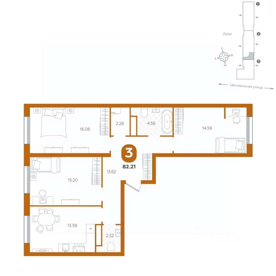 продам 3-к, Центральная, 25 корп. 17 024 800 ₽