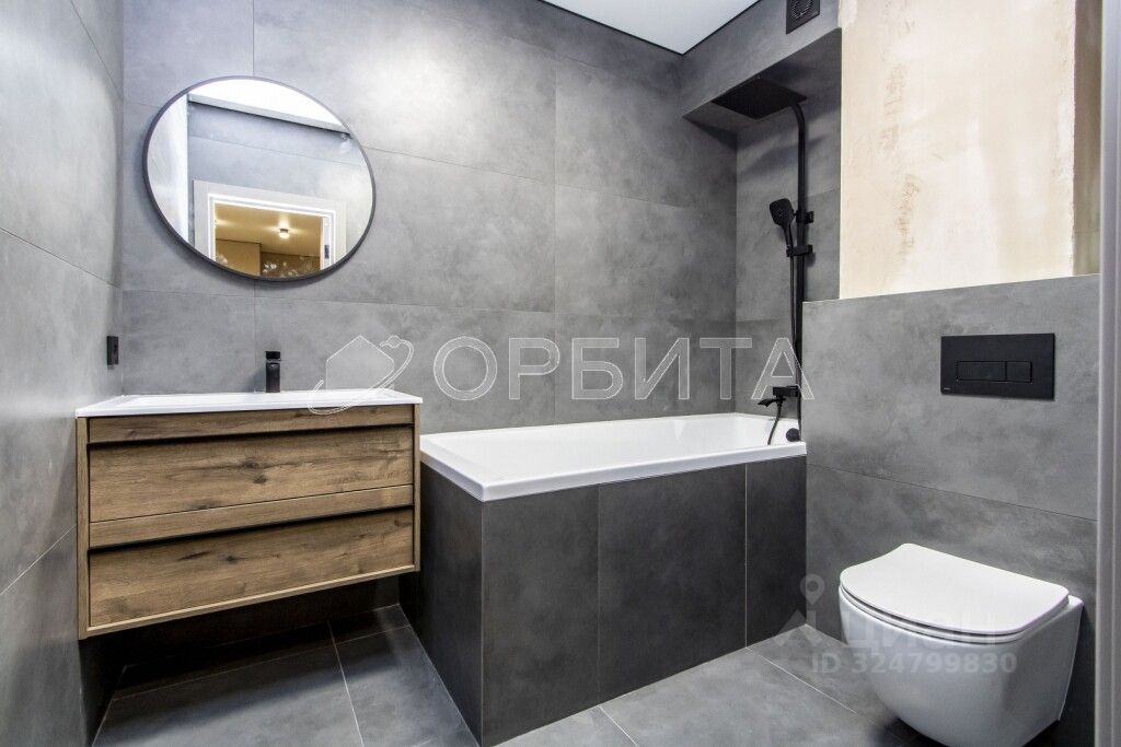 • Санузел отделан керамогранитом, в ванной комнате установлен теплый пол и стена с подогревом.