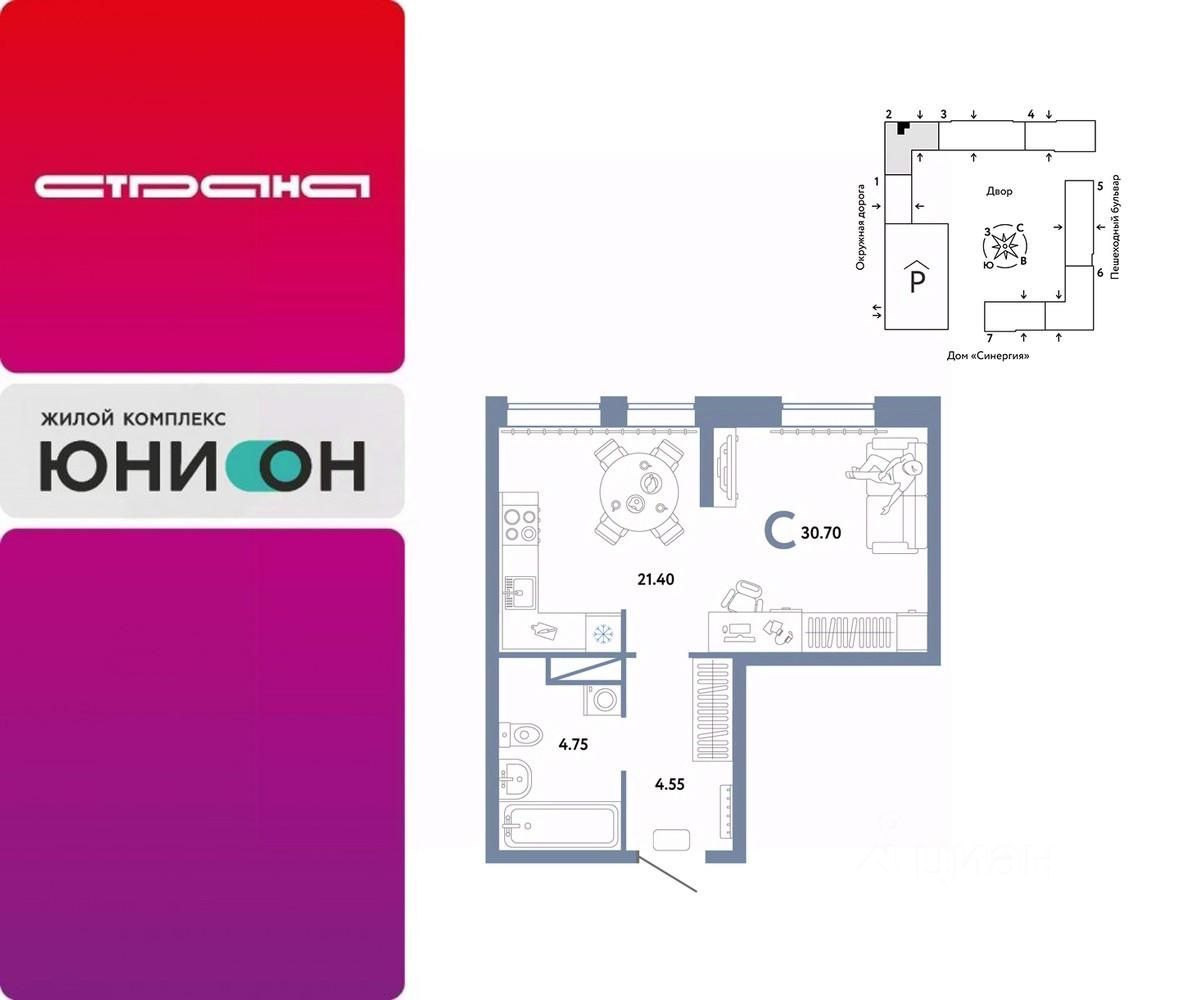 Продается студия на 5 этаже от застройщика Страна Девелопмент. Площадь квартиры 30,7 кв. м.