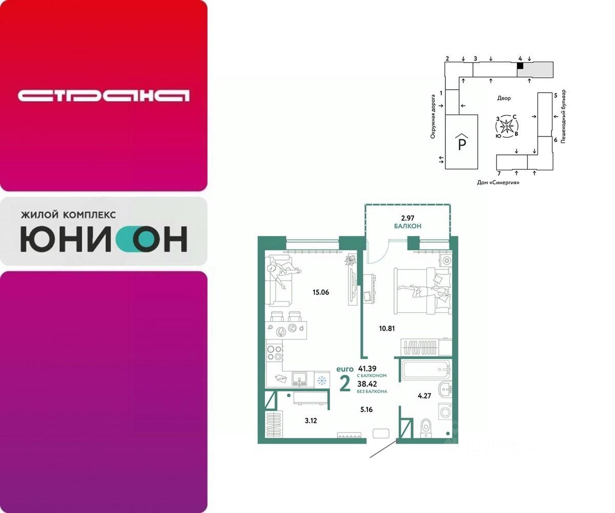 Продается 2комнатная квартира на 11 этаже от застройщика Страна Девелопмент. Площадь квартиры 41,39 кв. м.