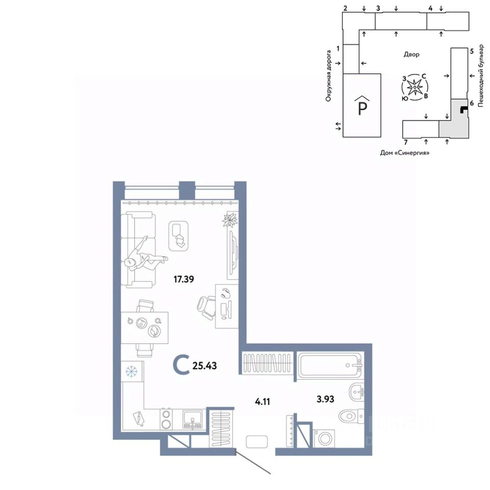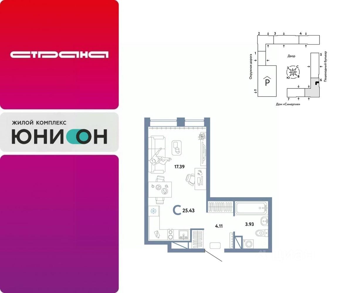 Продается студия на 15 этаже от застройщика Страна Девелопмент. Площадь квартиры 25,43 кв. м.