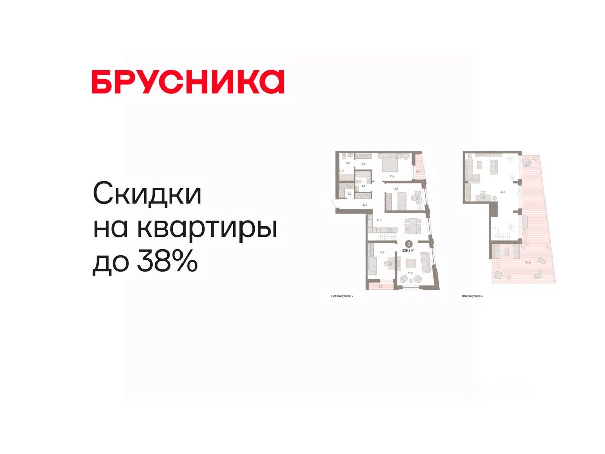 Квартира с кухней-гостиной и тремя спальнями в жилом районе ''Речной порт''. Особенности планировки: летняя кухня на крыше, свободная планировка. квартиры в нашей базе: РПТ04-Ж3.10.2.