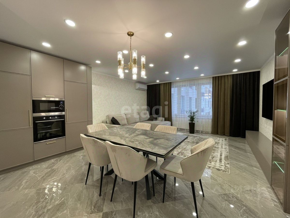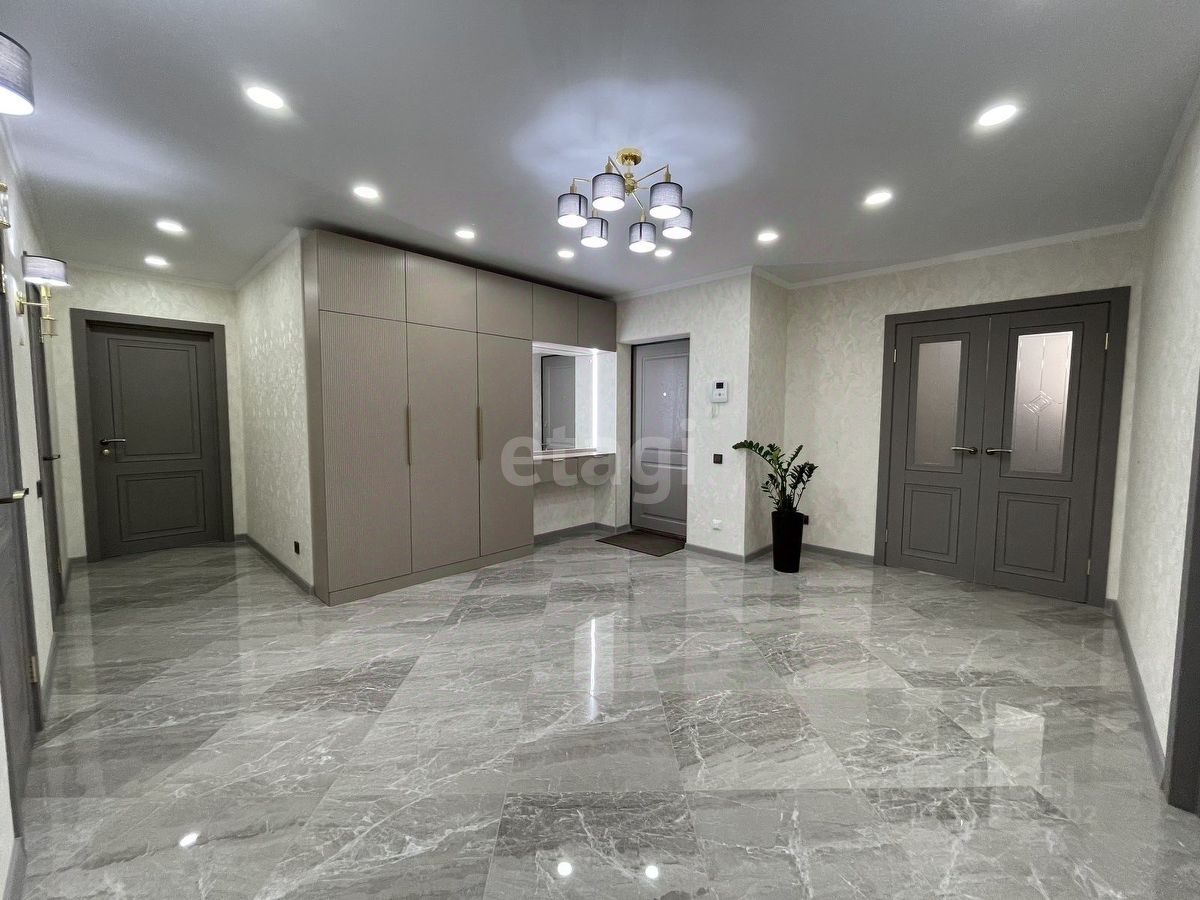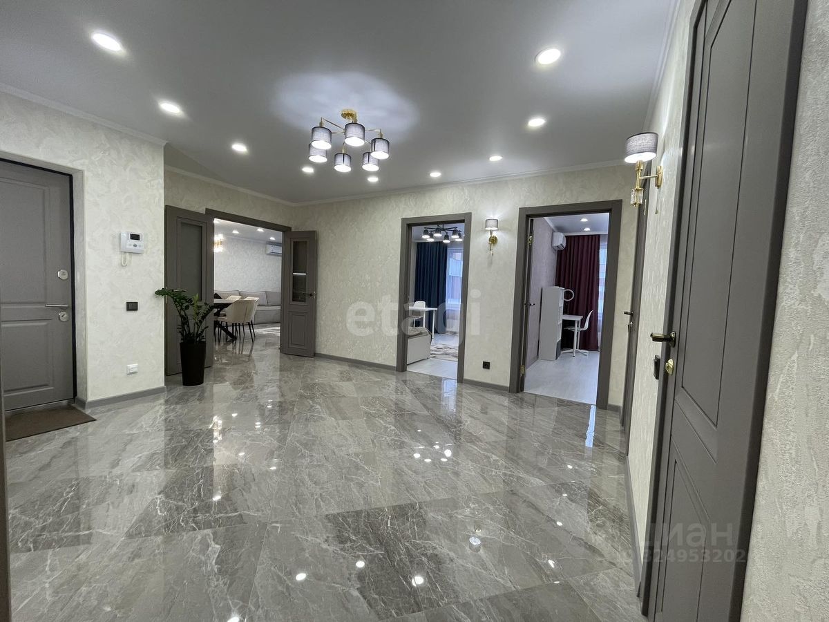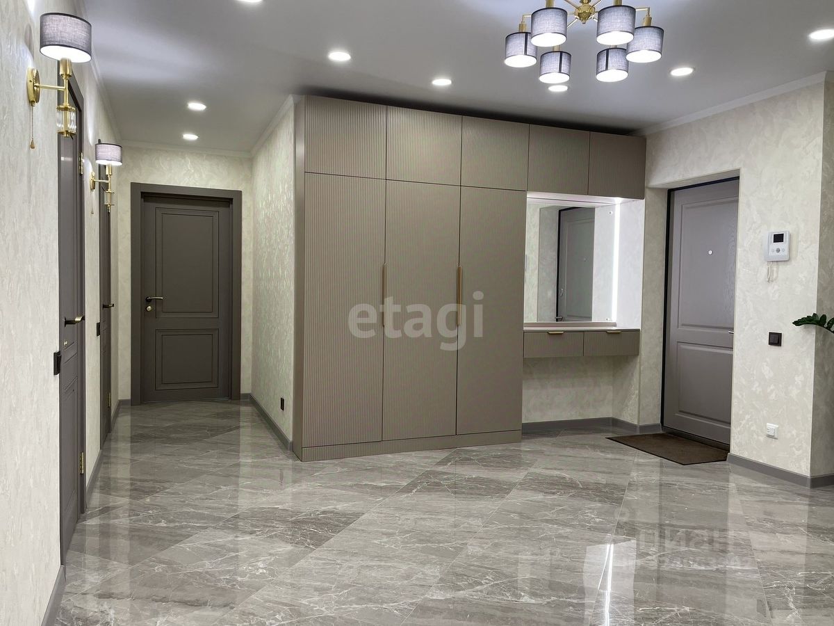Уважаемые покупатели! Представляем вам 3х комнатную квартиру с кухней-гостиной в самом популярном жилом комплексе ''Новин''. Ремонт в квартире проводился по дизайн-проекту. Просторная кухня гостиная, 3 спальные зоны из них 2 детские комнаты, гардеробная комната с системой хранения, 2 сан.узла. В квартире установлены датчики теплого пола, кондиционер, что позволяет создавать удобный для каждого микроклимат. Для ремонта квартиры использовались дорогие, качественные материалы - на стенах итальянские заказные обои, напольное покрытие в коридоре, кухне-гостиной и сан.узлах- качественный керамогранит фирмы ''Лапарет'', в спальнях на полу влагостойкий ламинат 12 класса, дизайнерский текстиль и осветительные приборы.