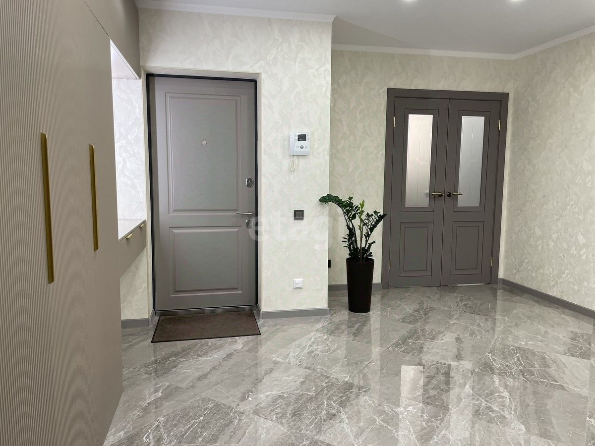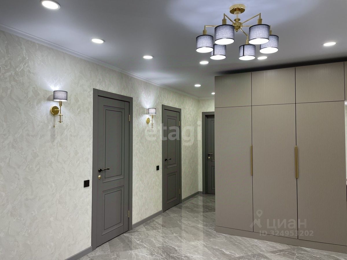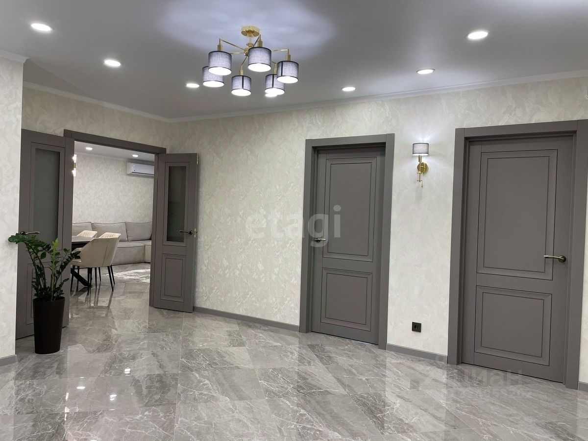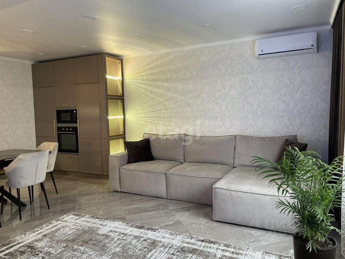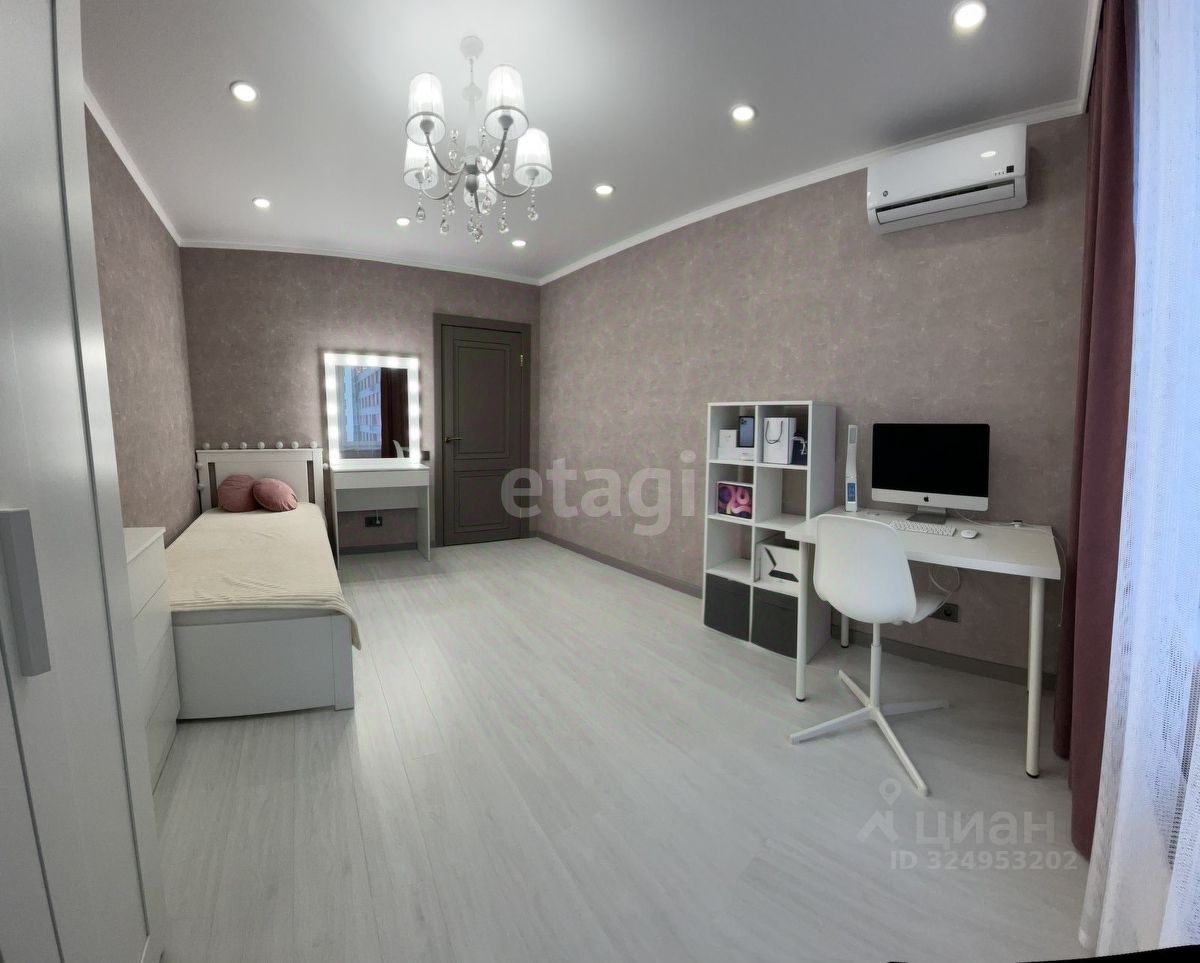 Уважаемые покупатели! Представляем вам 3х комнатную квартиру с кухней-гостиной в самом популярном жилом комплексе ''Новин''. Ремонт в квартире проводился по дизайн-проекту. Просторная кухня гостиная, 3 спальные зоны из них 2 детские комнаты, гардеробная комната с системой хранения, 2 сан.узла. В квартире установлены датчики теплого пола, кондиционер, что позволяет создавать удобный для каждого микроклимат. Для ремонта квартиры использовались дорогие, качественные материалы - на стенах итальянские заказные обои, напольное покрытие в коридоре, кухне-гостиной и сан.узлах- качественный керамогранит фирмы ''Лапарет'', в спальнях на полу влагостойкий ламинат 12 класса, дизайнерский текстиль и осветительные приборы.