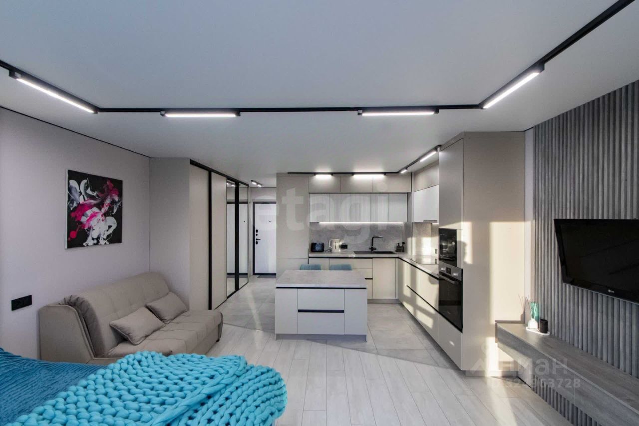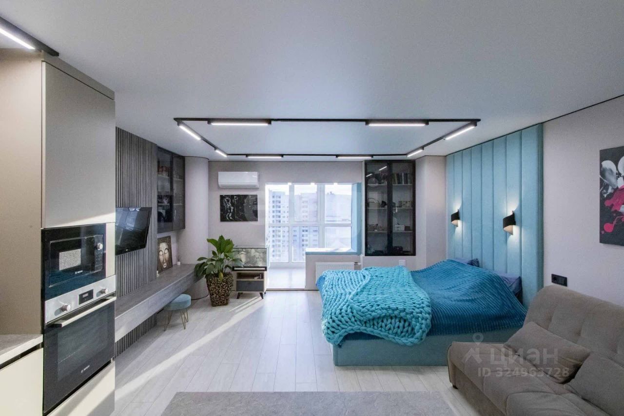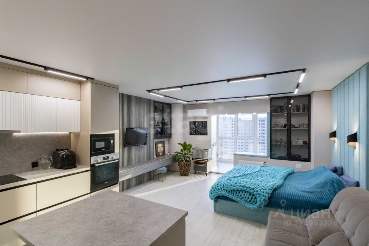 Просторная студия с дизайнерским ремонтом расположена на 13 этаже дома в центре города! Ключевым преимуществом квартиры является панорамное остекление, объединяющее основное пространство с балконом и открывающее впечатляющий вид на город. Квартира максимально светлая и функциональная, ремонт выполнен три месяца назад с использованием качественных материалов. В квартире остается вся необходимая мебель и техника, включая кухонный гарнитур с встроенной техникой (посудомоечная машина, вытяжка, варочная панель, духовой шкаф, микроволновая печь фирмы BOSH, холодильник). В прихожей оборудован большой шкаф-купе, продуманы дополнительные системы хранения.