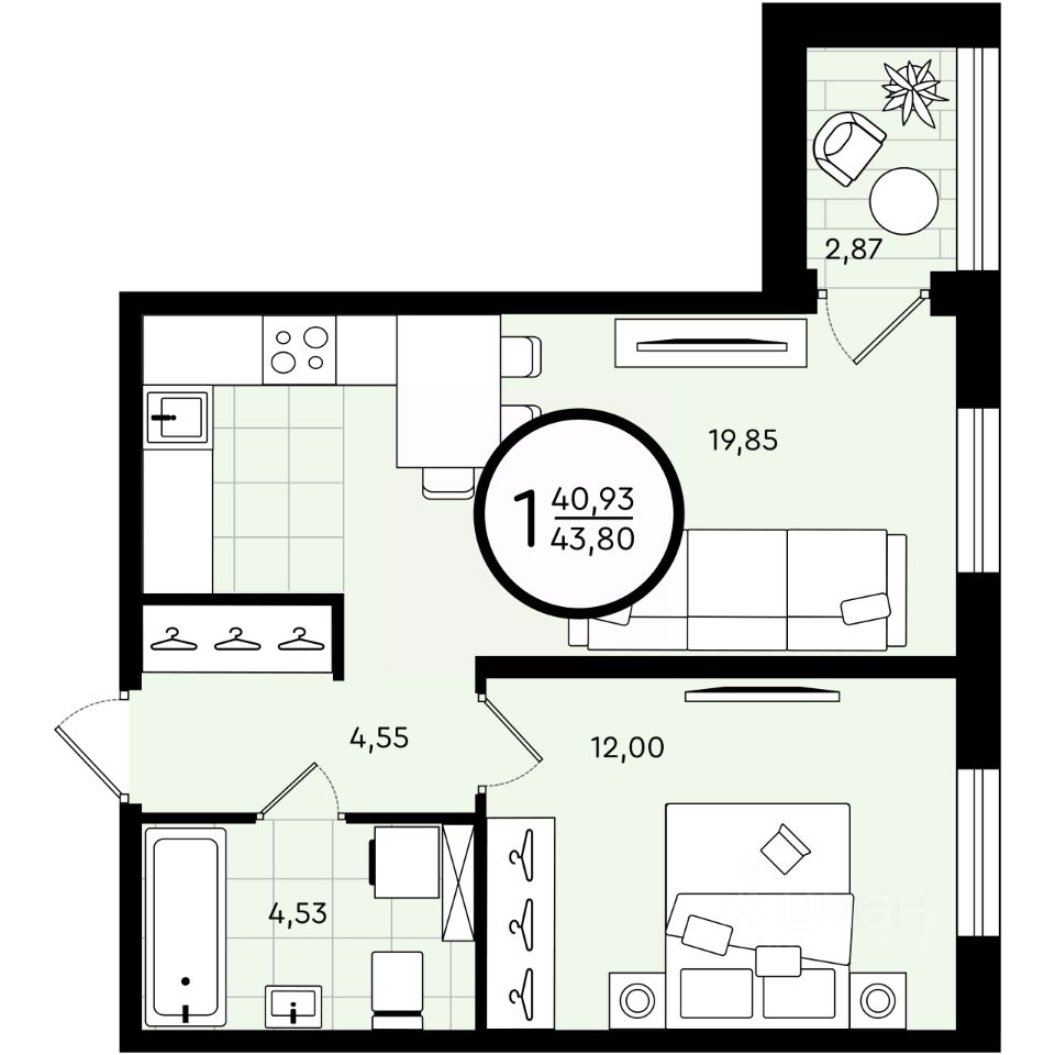 Общая площадь43,8 м2