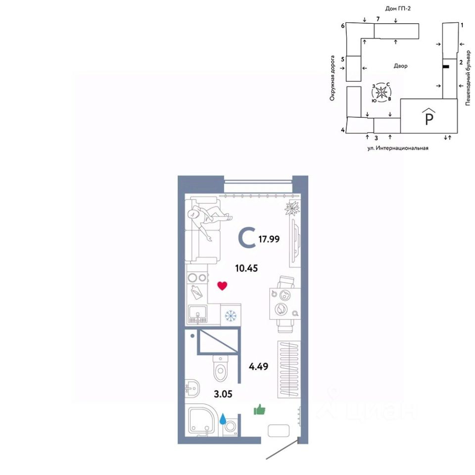 Продается 0комнатная квартира в новом ЖК ''Юнион''. Общая площадь квартиры 17,99 кв. м. Сдача — в 3 квартале 2024 года.