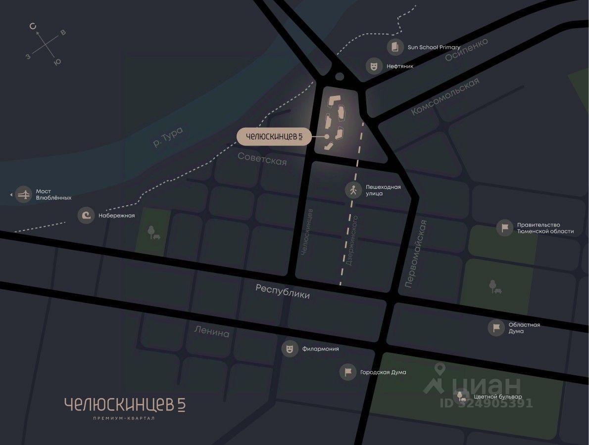 Квартира в квартале премиум-класса в центре города. Рядом набережная и пешеходный бульвар с гастрономией, торговой галереей и архитектурными арт-объектами.