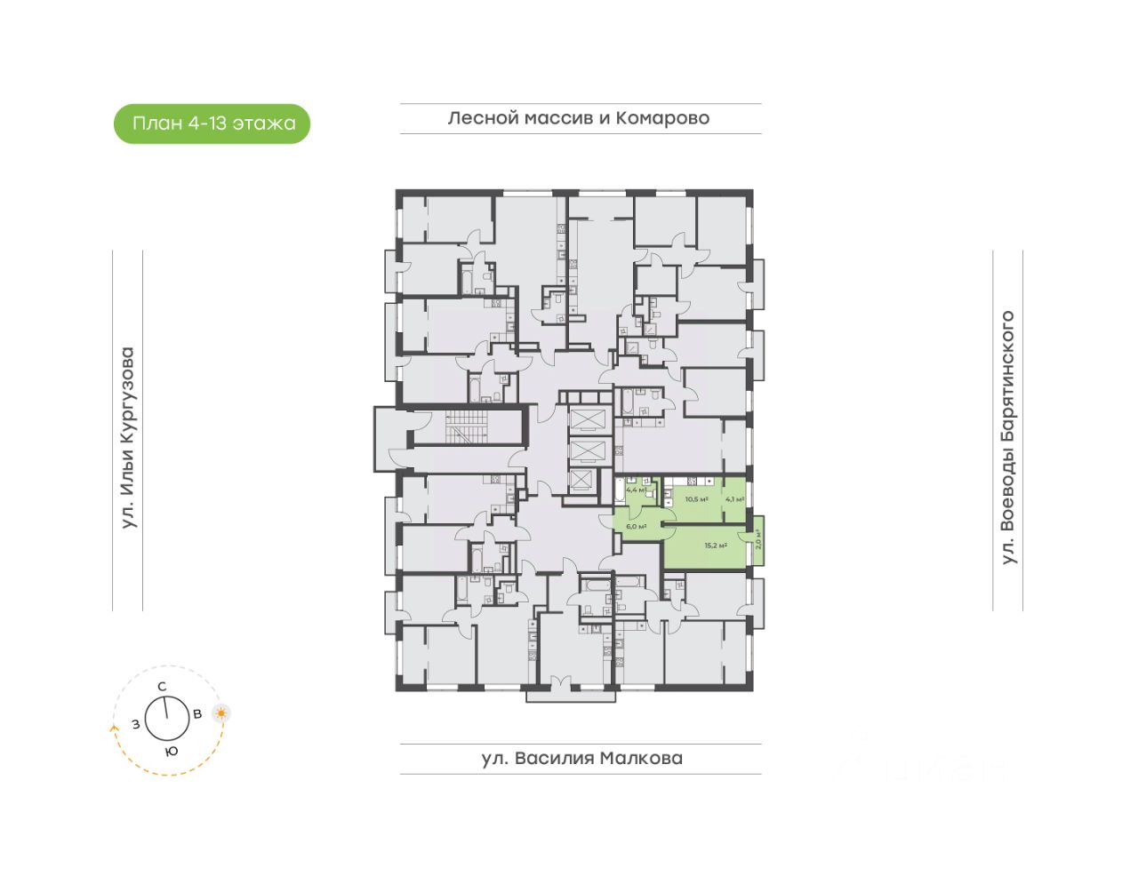 Однокомнатная квартира с видом на современный микрорайон Комарово-парк