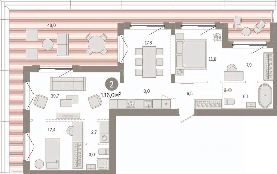 Продается 2-комн. квартира с предчистовой отделкой в Кварталы ''На Минской'' на 7 этаже. Общая площадь: 135.98 кв.м. Высота потолков 2.7 м.