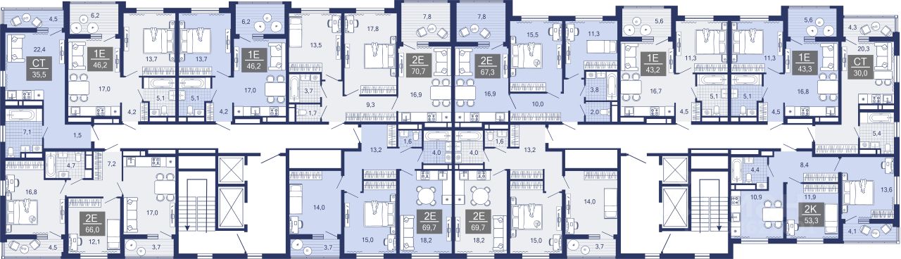 2-уровневые квартиры Просторная гостиная и кухня располагаются на первом этаже, спальня и кабинет — на втором. Почувствуйте, как жизнь выходит на новый уровень комфорта и приватности.