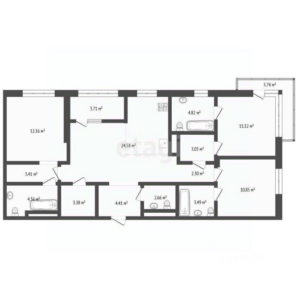 Квартира площадью 95,2 кв. м расположена на 9-м этаже жилого комплекса ''В Гагаринском парке'' в северо-восточной части Тюмени. Объект отличается продуманной планировкой, которая встречается только в этом ЖК: просторная кухня-гостиная 24,5 кв. м, три изолированные мастер-спальни с индивидуальными санузлами и гардеробными, балкон и лоджия. Высота потолков 3 метра создает ощущение простора, а панорамные окна обеспечивают обилие естественного света и видовые характеристики. Жилой комплекс выполнен в современном стиле с элементами футуристического дизайна и благоустроенной территорией. Двор с ландшафтным озеленением, зонами отдыха и дизайнерскими беседками предлагает комфортную среду для прогулок и отдыха. В доме предусмотрены сквозные подъезды, безбарьерная среда, места для хранения колясок и спортивного инвентаря.