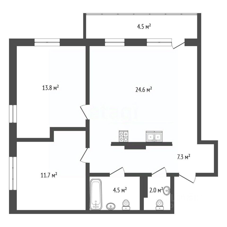 Большая кухня с выходом на балкон, витражные окна, входная зона не проходная грязь не разносится Ниши под шкафы в обеих спальнях 2 сан. Узла Комплексная застройка по принципу ''город в городе'', когда все есть в доступной близости. Большой парк в пешей доступности