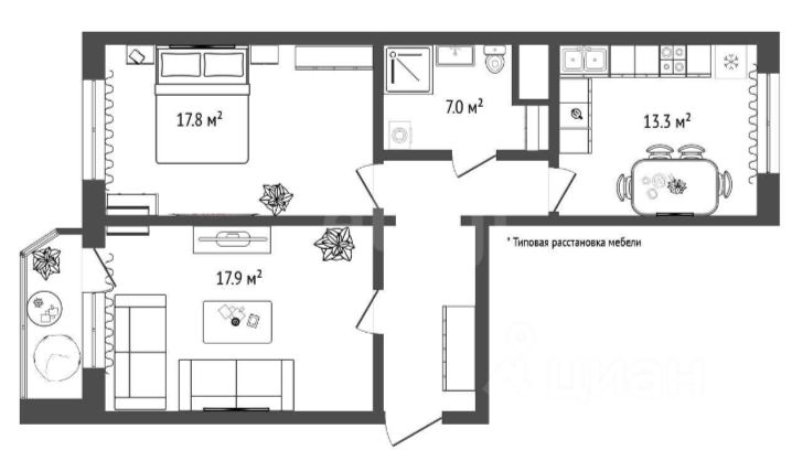 продам 2-к, Александра Пушкина, 15 500 000 ₽