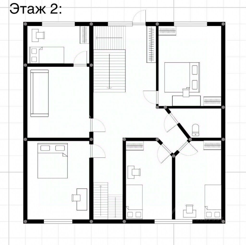 На первом этаже кухня столовая, кабинет, 2 санузла и душевая! На втором этаже жилых 5 комнат, туалет и душевая! На третьем этаже 2 жилые комнаты и туалет!