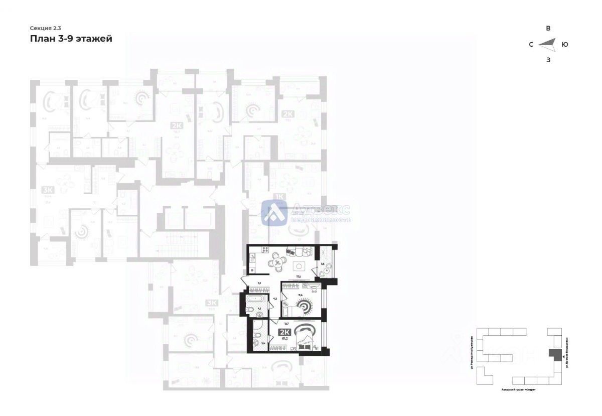 продам 2-к, Братьев Бондаревых, 59 700 000 ₽