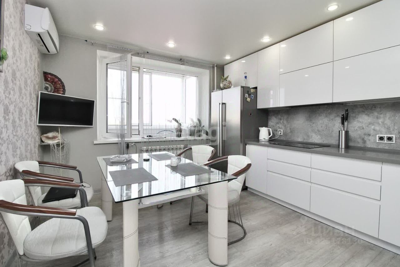 Продается 4х комнатная квартира. Современный ремонт. Чистый подъезд, в 22 году произведен капитальный ремонт крыши и тех. этажа. Двор огорожен, есть небольшая стоянка для автотранспорта, детская и спортивная площадка во дворе. В 50 метрах большая, бесплатная парковка. Центр города, развитая инфраструктура, детские сады, школы, парки, магазины, областная больница, Мед институт, музыкальная школа, библиотека, Тюменский Индустриальный университет в шаговой доступности. Квартира 104,7 кв.м, расположена на 9 этаже, 9-и этажного дома 121т серии. 1997 года постройки. Высота потолков 2,5 м., с/у раздельный, 2 лоджии остеклены, декоративная штукатурка. Окна - пластик, пол-кварцвенил, ламинат, стены-обои, кафель в с/у, Кухня -13,5 кв.м, 3 комнаты по 20 кв.м., 1 комната-гардеробная 13 м.кв.