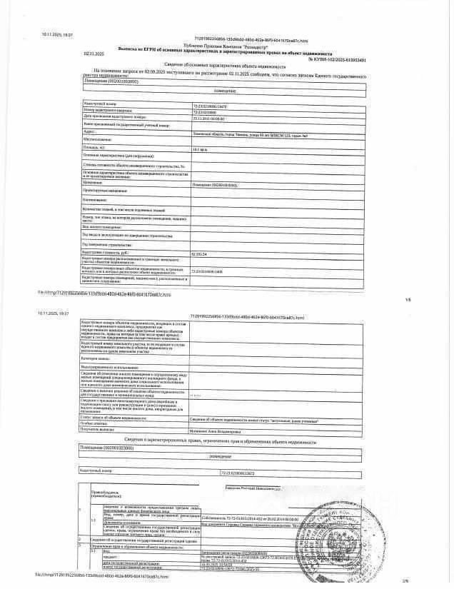 Должник: Ермолаев В.Н., собственник: Ермолаев В.Н. Лот: Нежилое помещение, площадь 16,1 кв.м., кадастровый номер: 72:23:0218006:13672, г. Тюмень, ул. 50 лет ВЛКСМ 123, гараж 9, н/ц: 390700 р., з-к: 58605 р., код: 0001, рег. 72-0105-63,