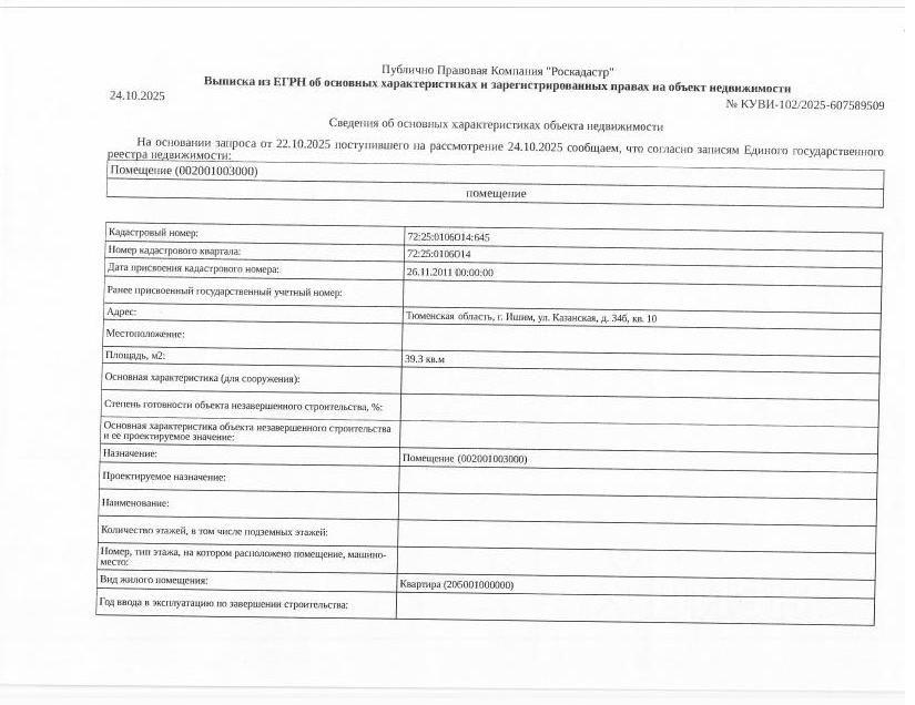 Должник: Аксенов А.В., собственник: Аксенов А.В., Аксенов В.А., Аксенов А.А. Лот: Жилое помещение (квартира), площадь 39,3 кв.м., кадастровый номер: 72:25:0106014:645, г. Ишим, ул. Казанская, д. 34Б, кв. 10 (зарегистрировано 2 - взрослых, 2- ребенка, задолженность по капитальному ремонту на 29.10.2025 составляет - 12 т.р, сделка подлежит нотариальному удостоверению), н/ц: 1345780,80 р., з-к: 1345 р, код: 0014, рег. 72-0105-59,