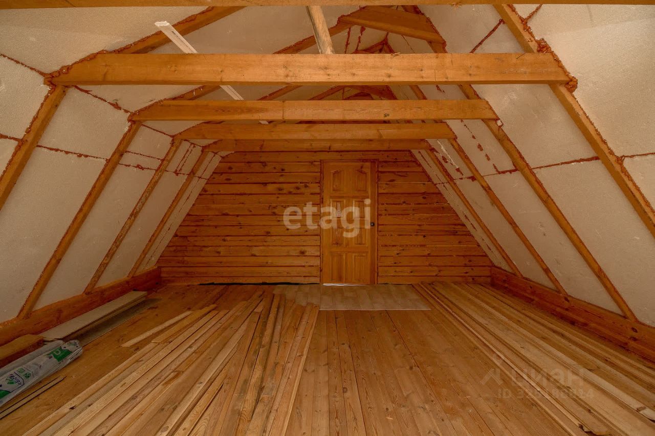 О ДОМЕ: двухэтажный деревянный дом из бруса 93кв.м., утеплен минватой, обшит сайдингом. Отопление электрическое. На первом этаже просторная гостиная, кухня и выход в баню, на втором этаже лаундж зона и мансарда (утеплена), может быть организована и декорирована под Ваш вкус. На кухне установлен кухонный гарнитур, подведена холодная вода (подключен насос), установлен бойлер, проведен слив в септик (5 кубов). При этом через кухню организован выход в баню, где также подведена вода, установлен душ.