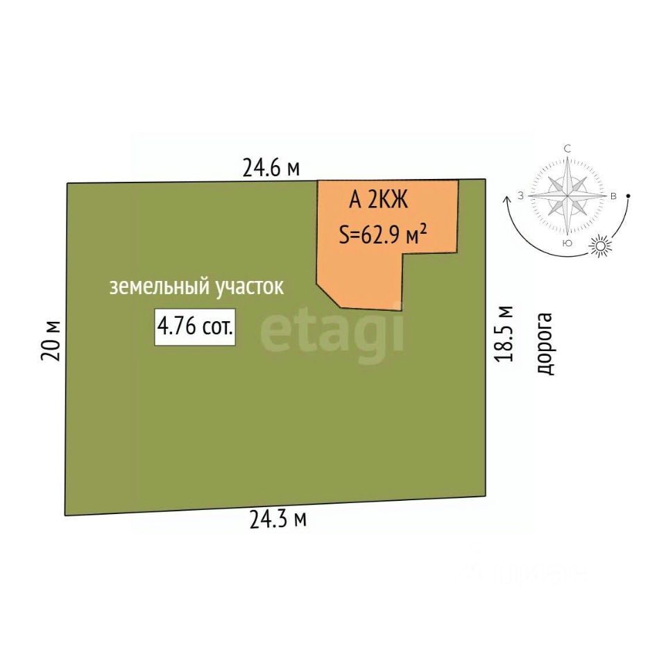 Площадь дома62,9 м2