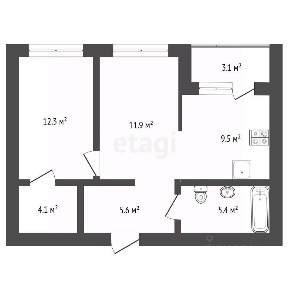 Продается 2-х ком. квартира, площадь 49 кв.м.