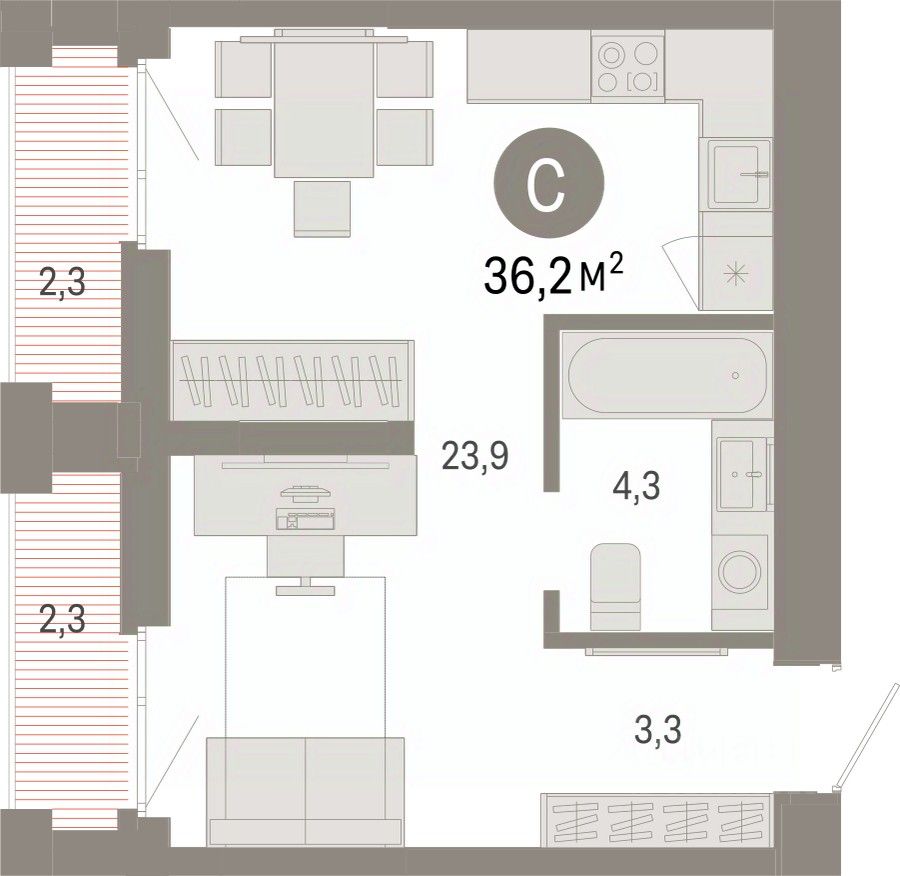 Продается однокомнатная студия с предчистовой отделкой в ЖК ''Республики 205'' на 14 этаже. Общая площадь: 36.18 кв.м. Высота потолков 2.7 м.