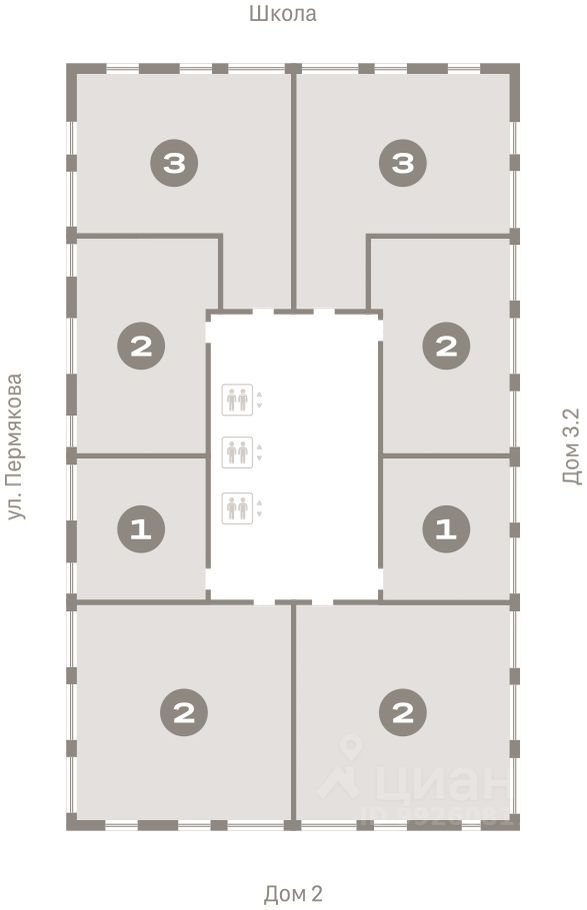 Дом монолитный, многоподъездный, переменной этажности, от 7 до 25 этажей. Квартира находится в 1-й секции высотой 25 этажей в корпусе 3-1. На этаже 8 квартир. В подъезде 2 пассажирских и 1 грузовой лифт.