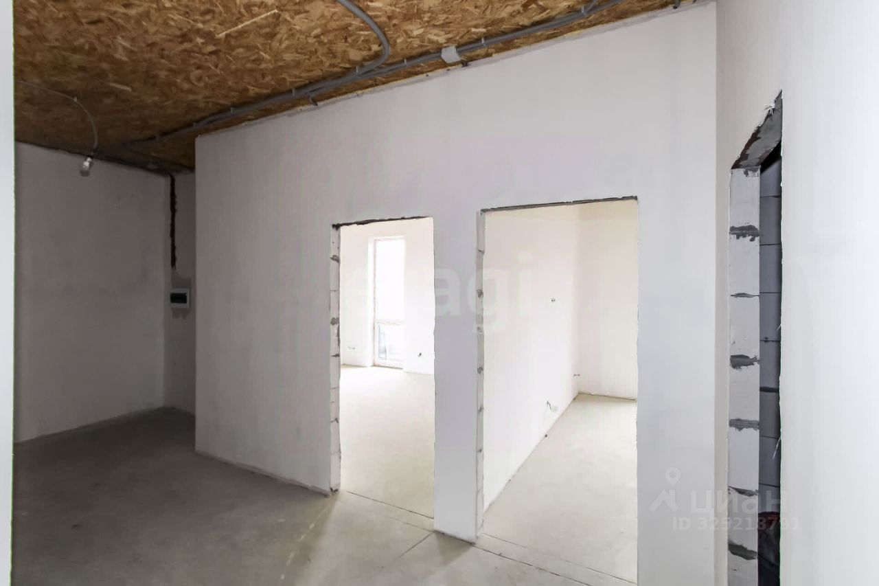 Внутренняя отделка выполнена качественно: стены оштукатурены по сетке, поверхности идеально ровные, готовы под покраску. Планировка продумана для комфортного проживания: две спальни, два санузла, просторная кухня-гостиная, встроенные ниши под шкафы. Панорамные окна обеспечивают хорошее естественное освещение.